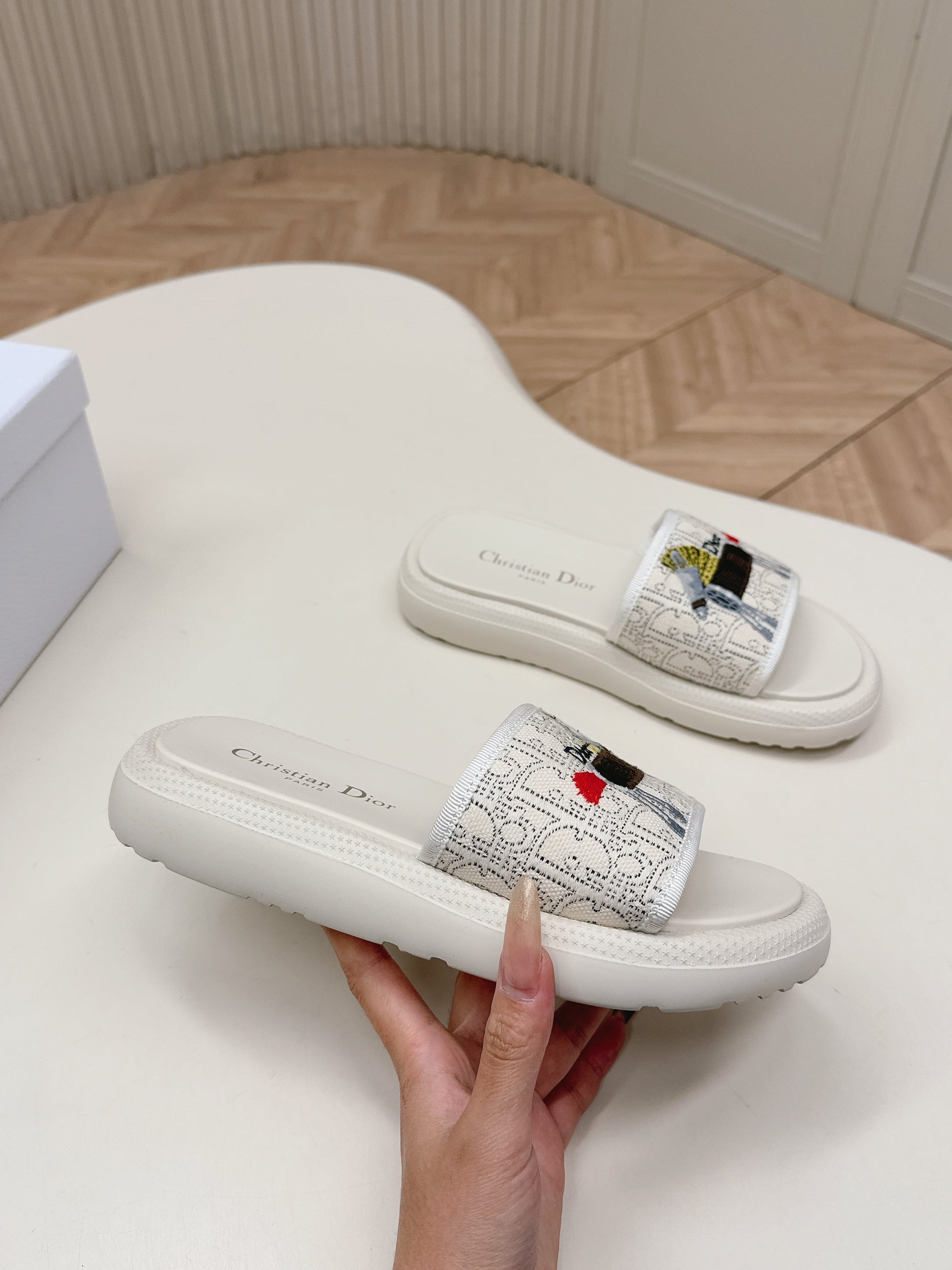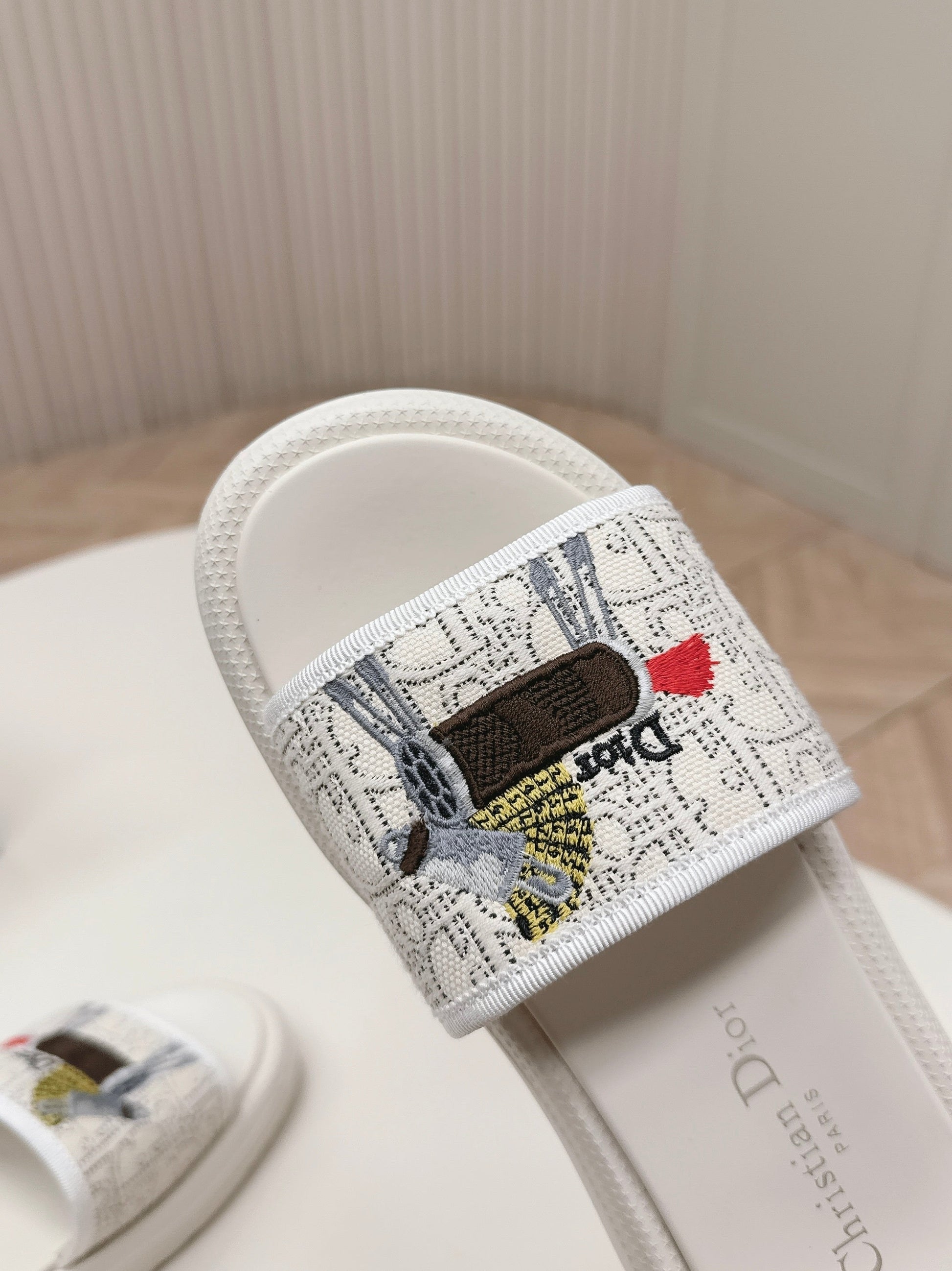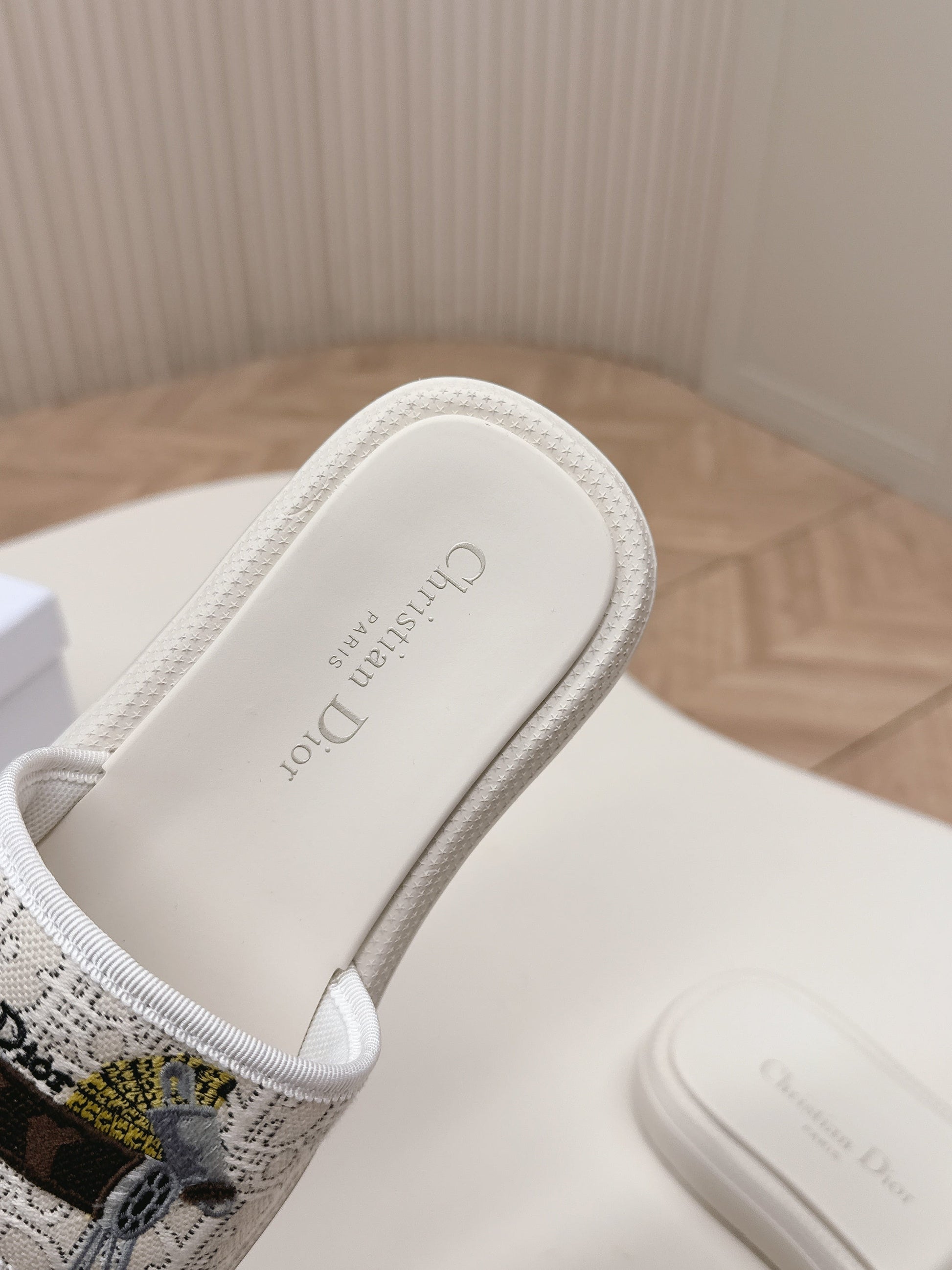 CD 26s Slippers White Canvas Lambskin 643806