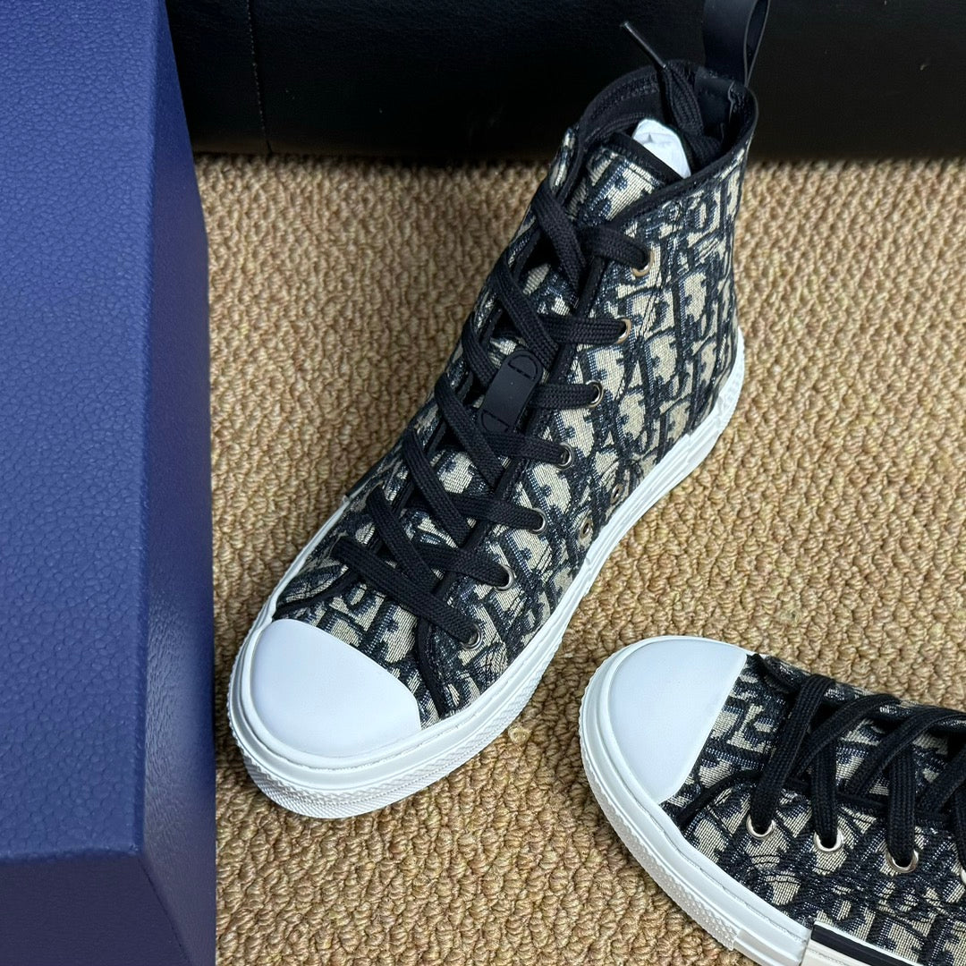 CD B23 High-Top Sneaker White Black Oblique Jacquard Fabric