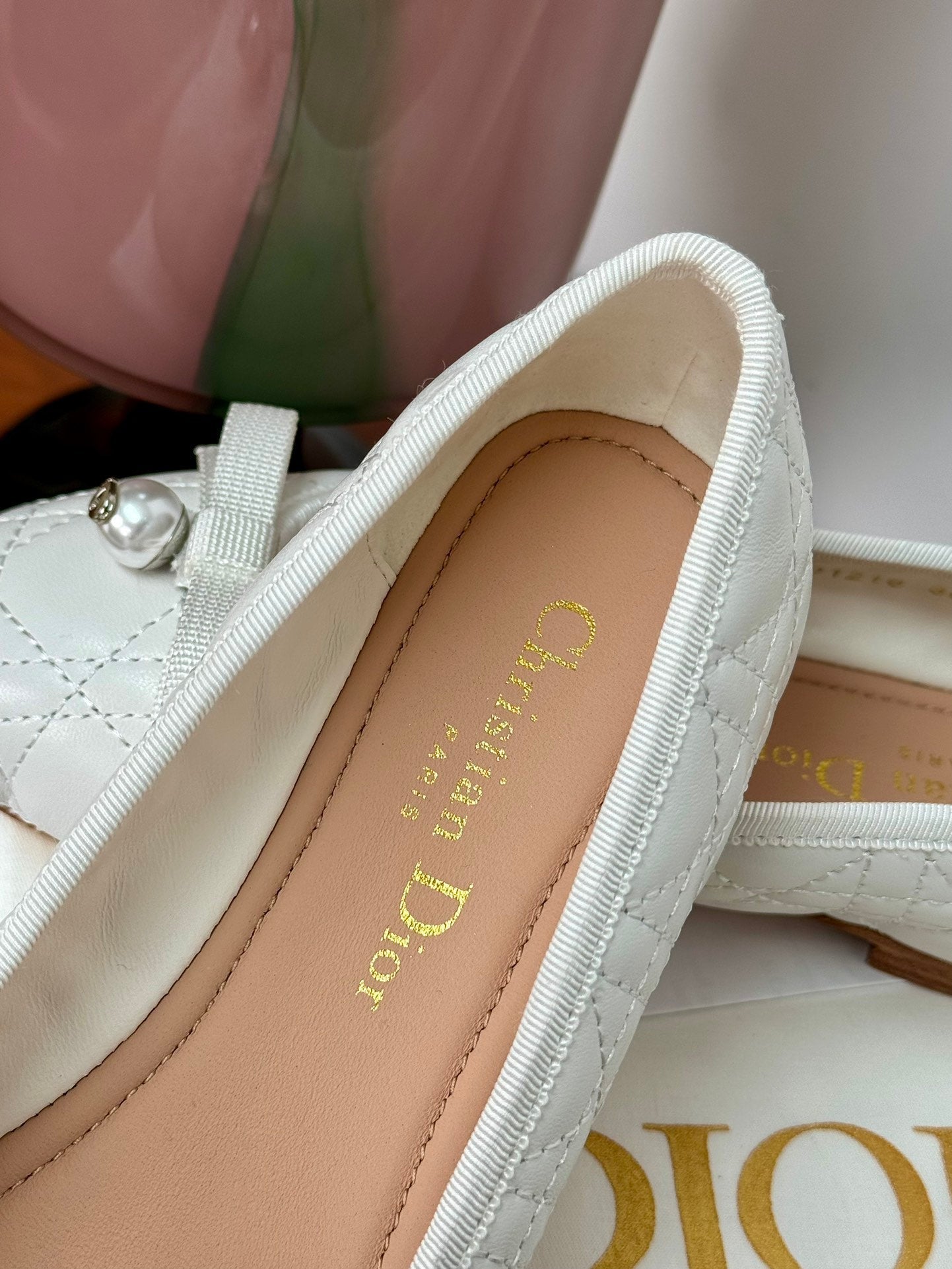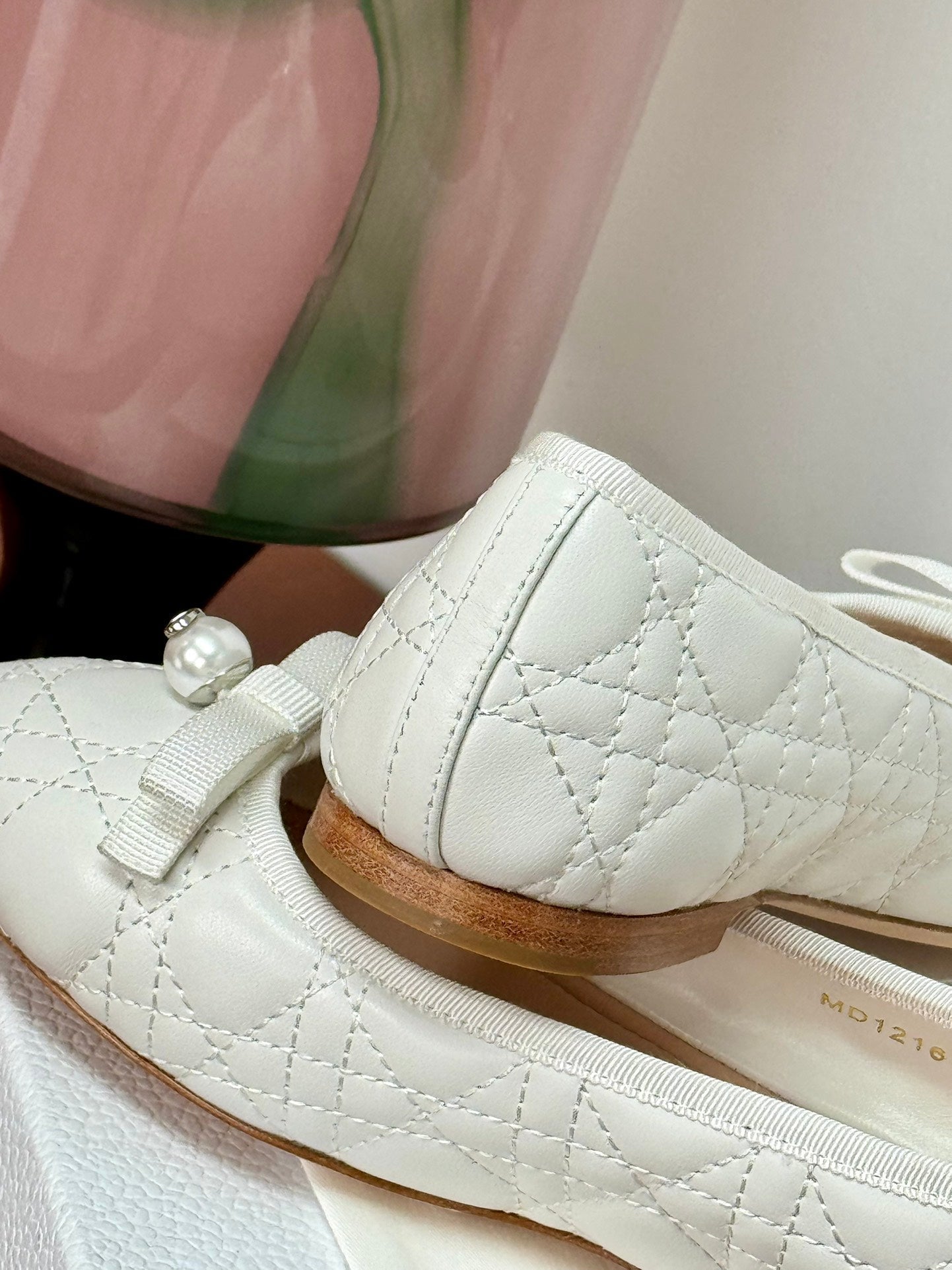 cd ballet flat white lambskin mop front
