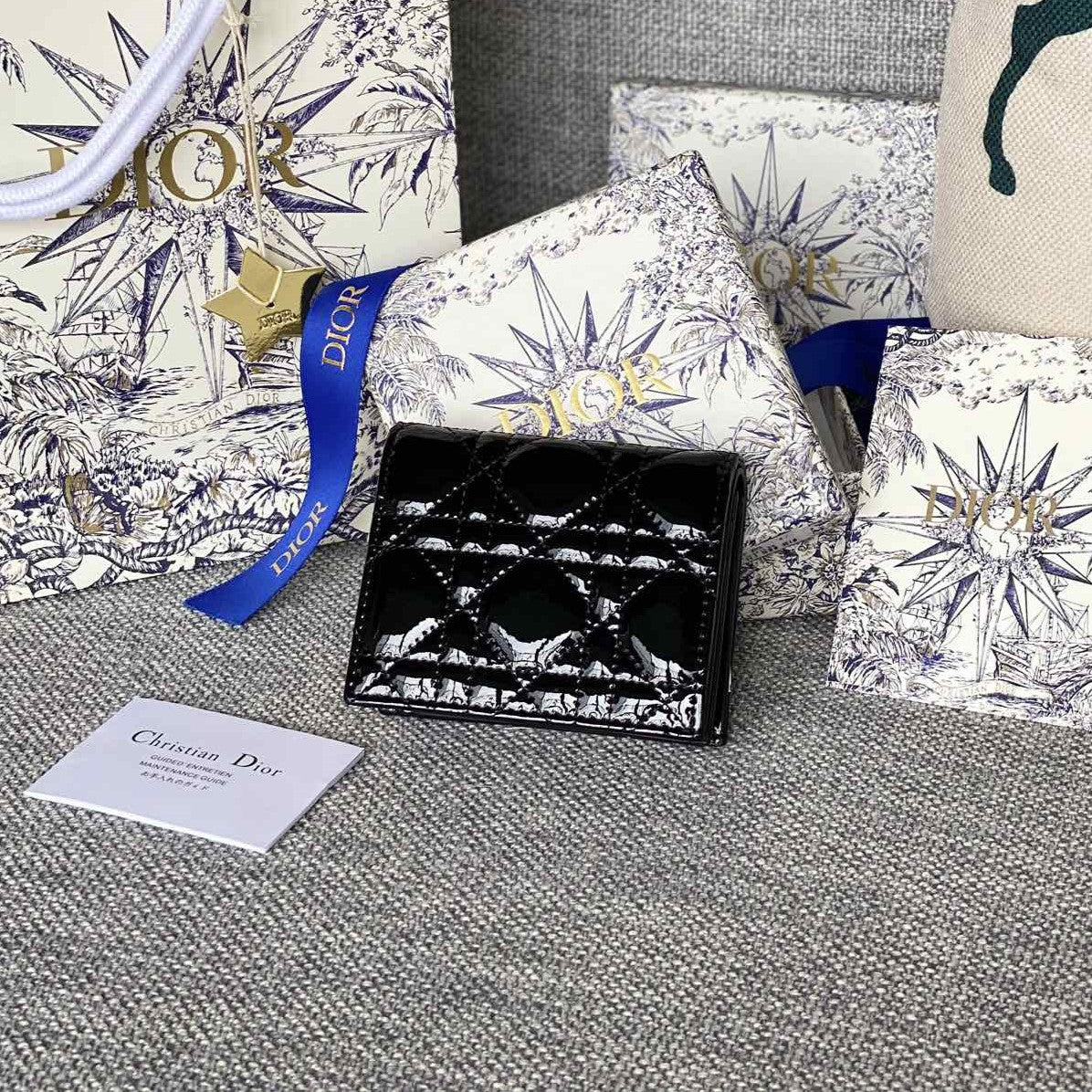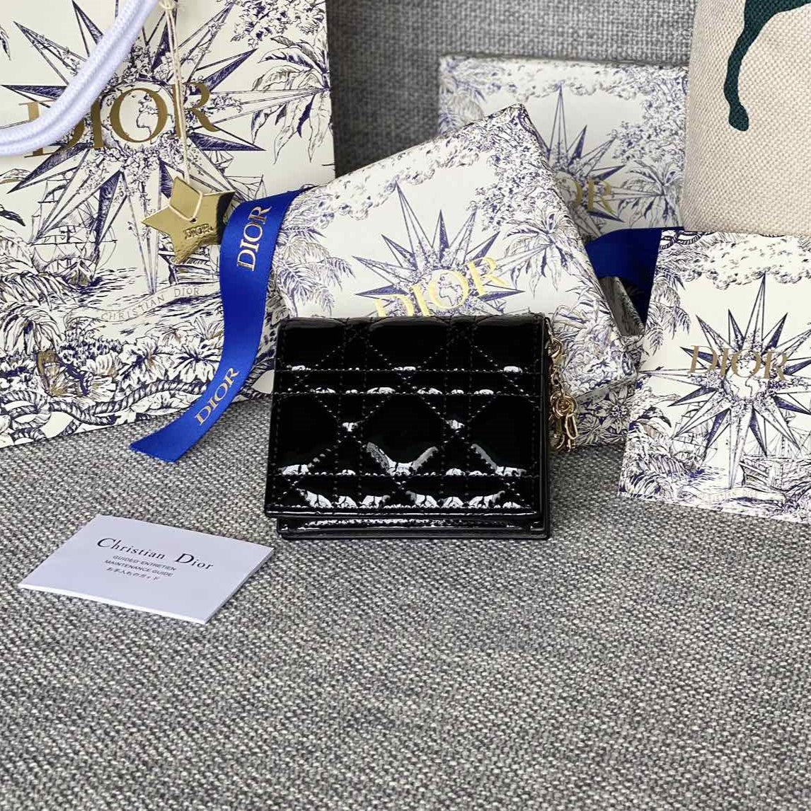 CD Caro 11cm Compact Wallet Shiny Black Calfskin