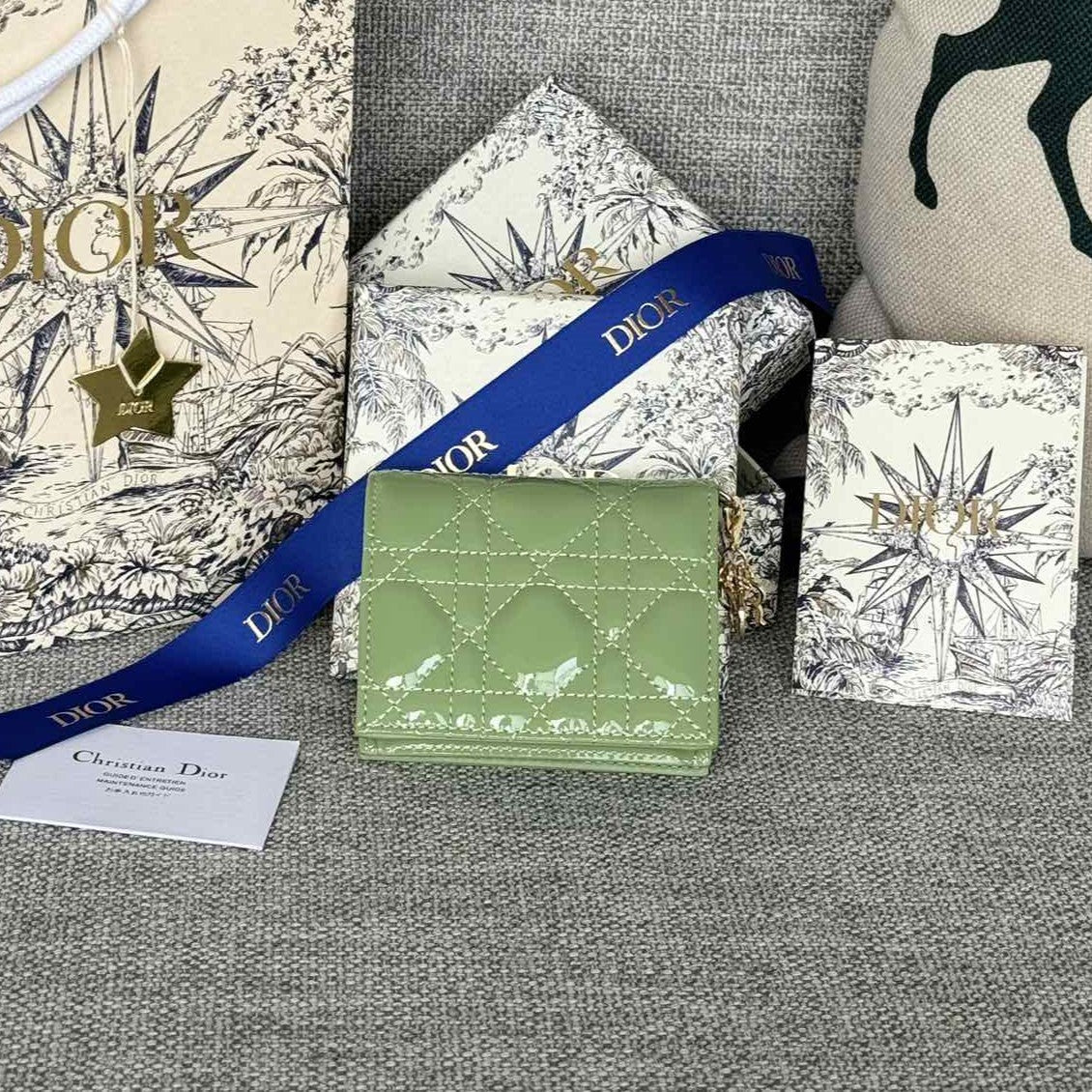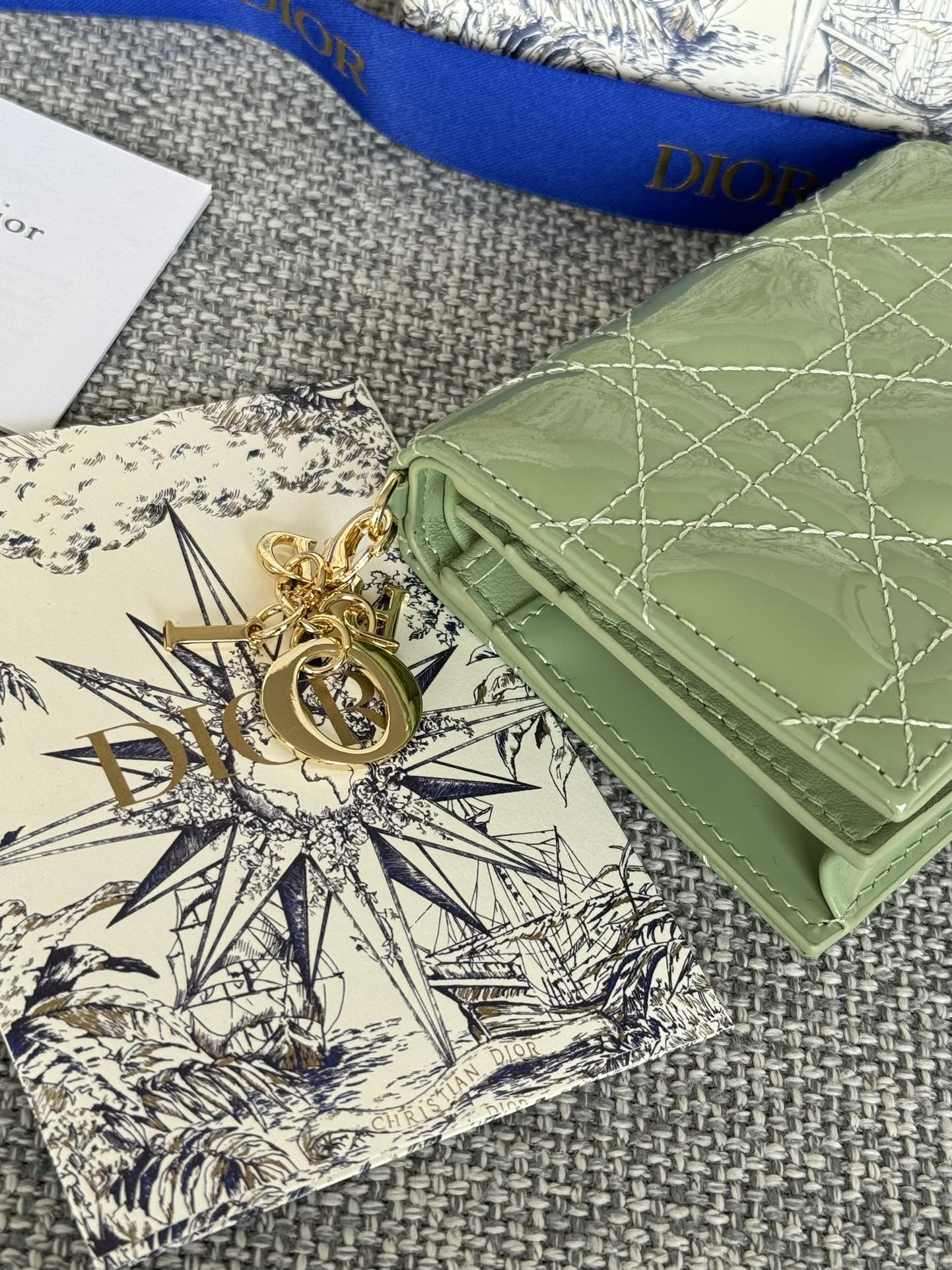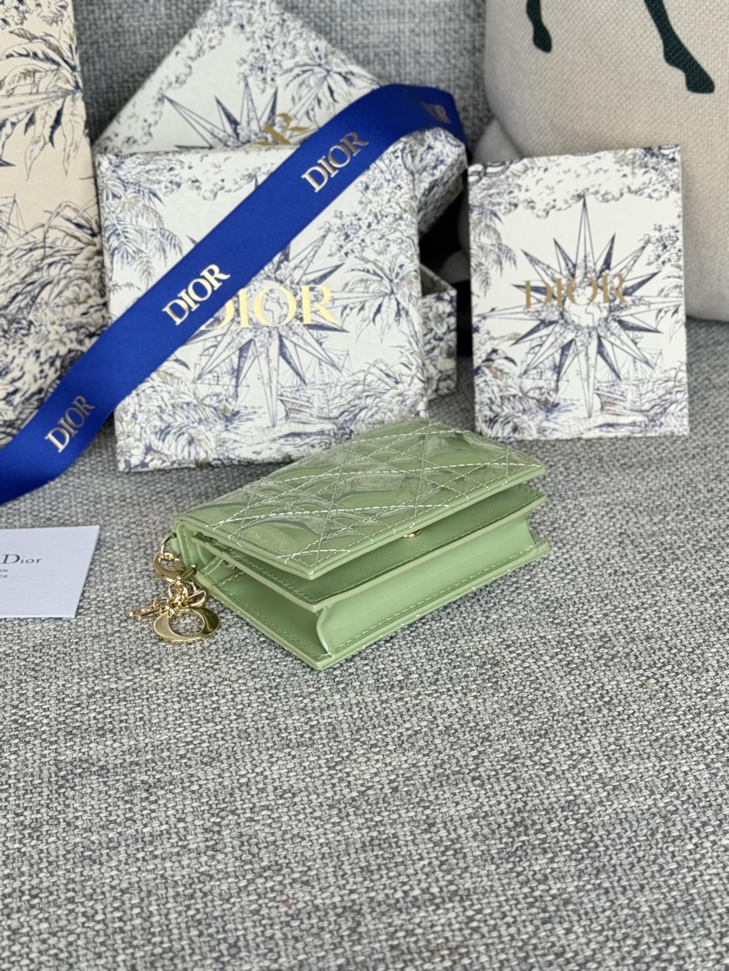 CD Caro 11cm Compact Wallet Shiny Green Calfskin