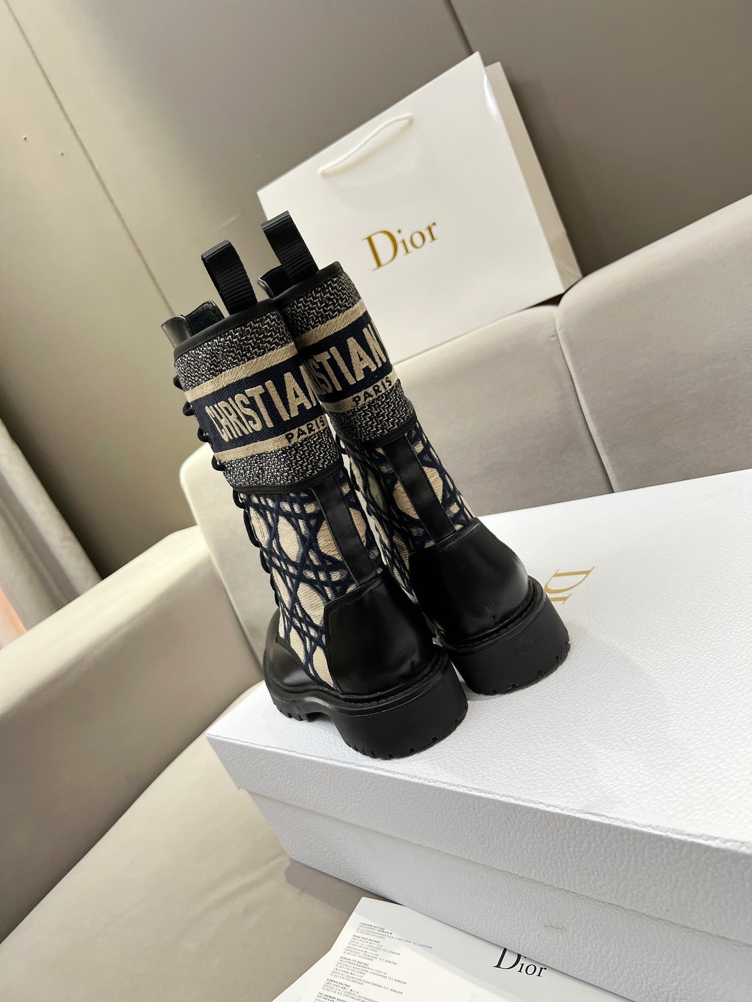 CD D-Major Ankle Boot In Charcoal Blue Mix Black Denim Fabric And Lambskin 107723