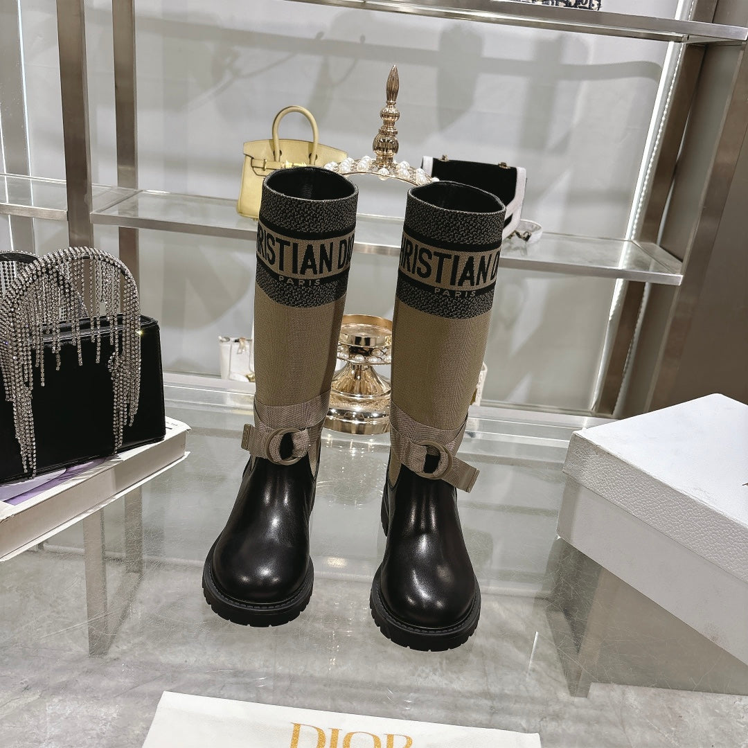 CD D-Major Boot Taupe Mix Black Calfskin And Denim Fabric