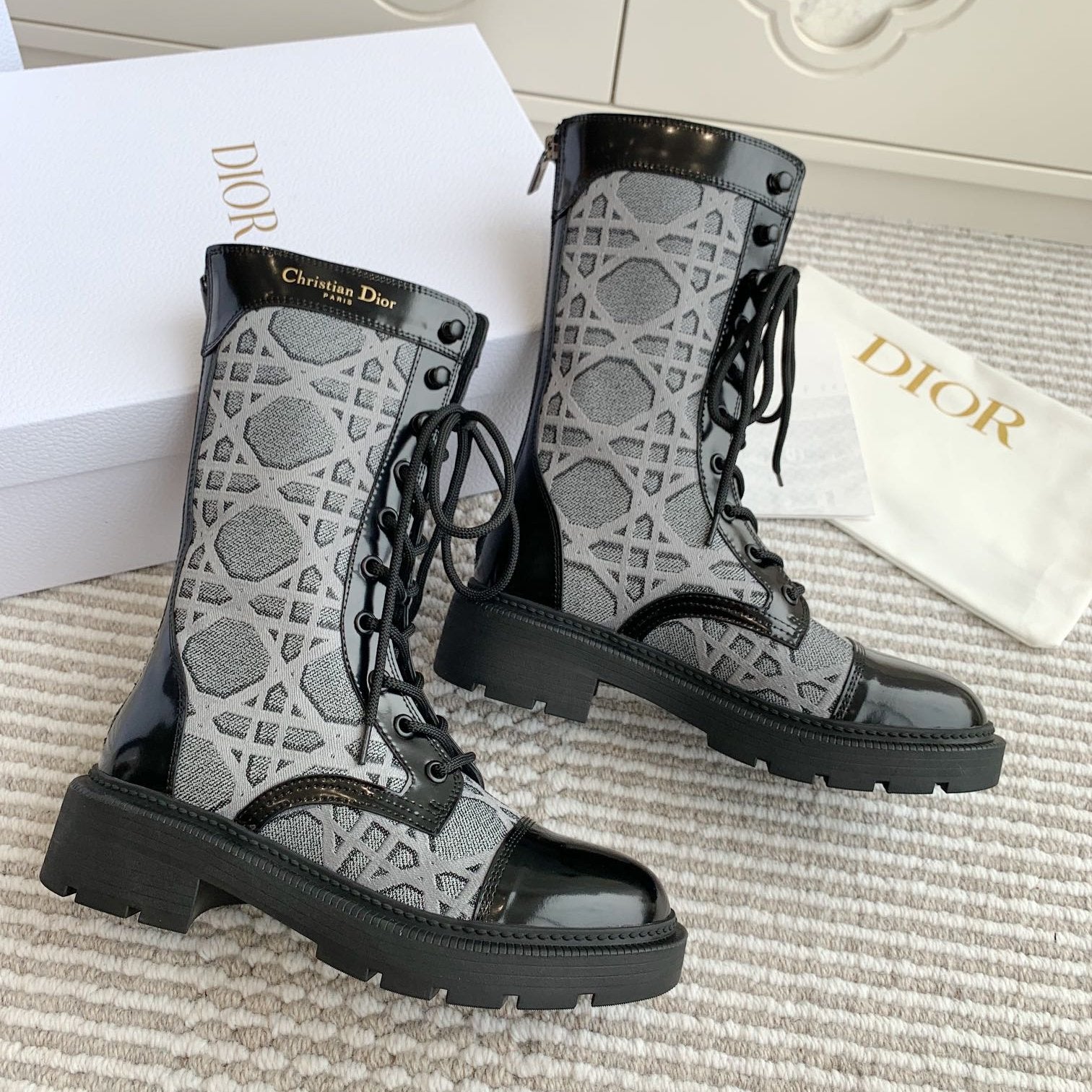 CD D-Unit Ankle Boot In Grey Mix Black Denim Fabric And Glossy Cowhide 105084