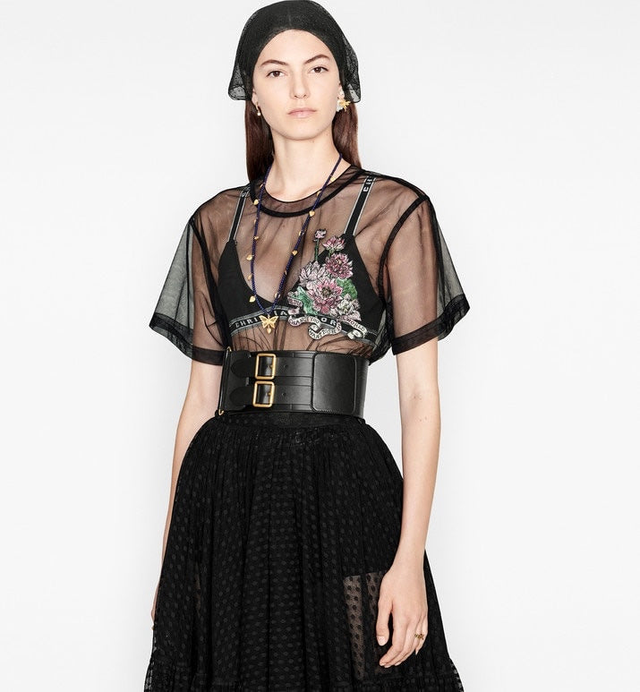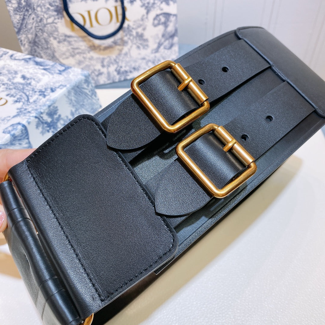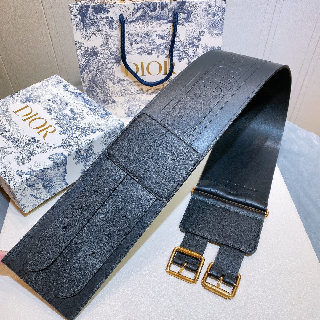 cd d-waist 10cm double buckle black leather