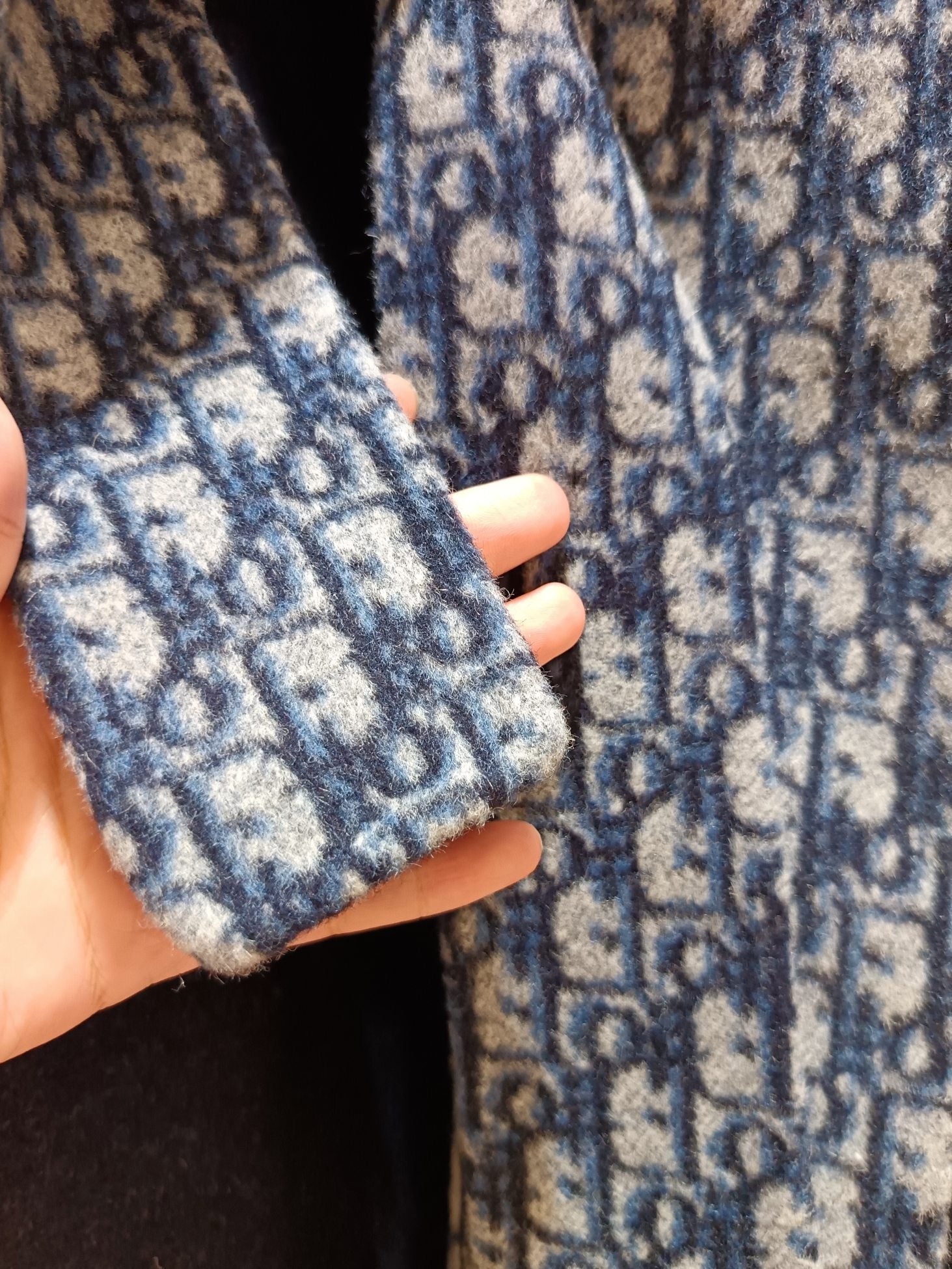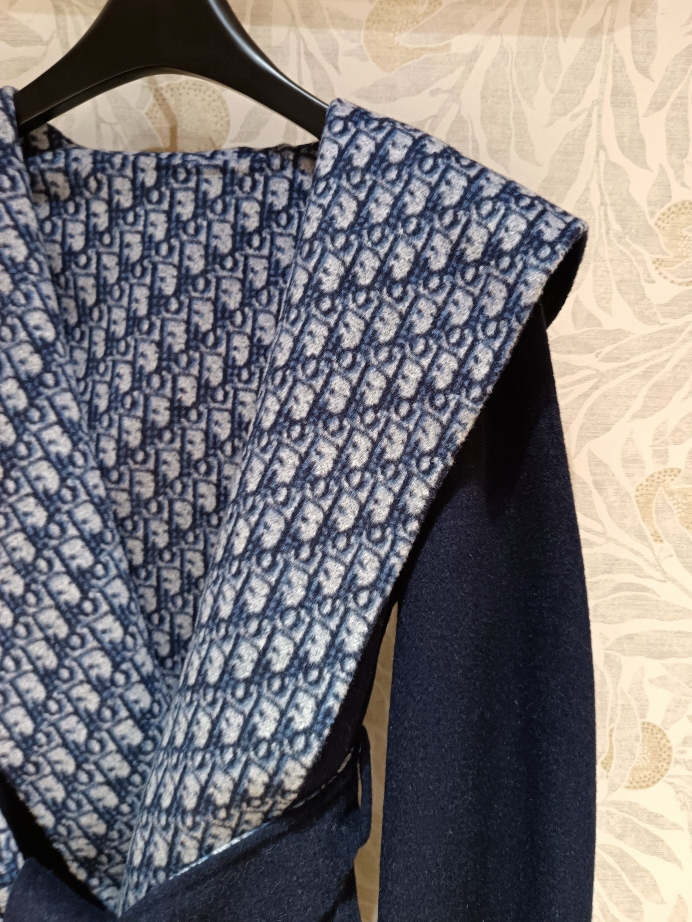 CD Hooded Long Coat Navy Blue Wool Silk