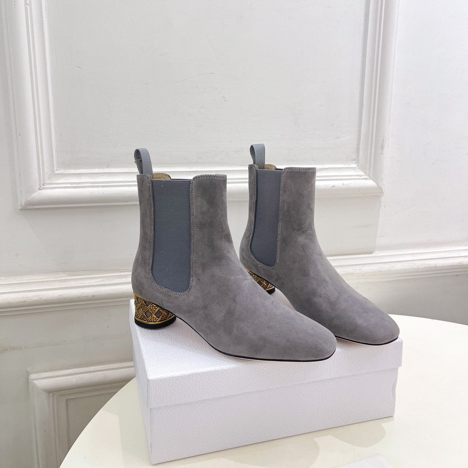 CD Icon Heeled Ankle Boot 40mm Grey Suede
