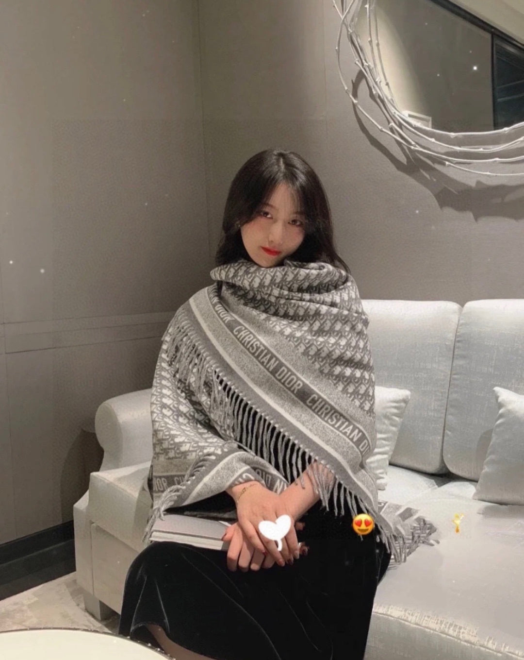 CD Jacquard Logo Scarf 140CM Gray Wool Cashmere 293335