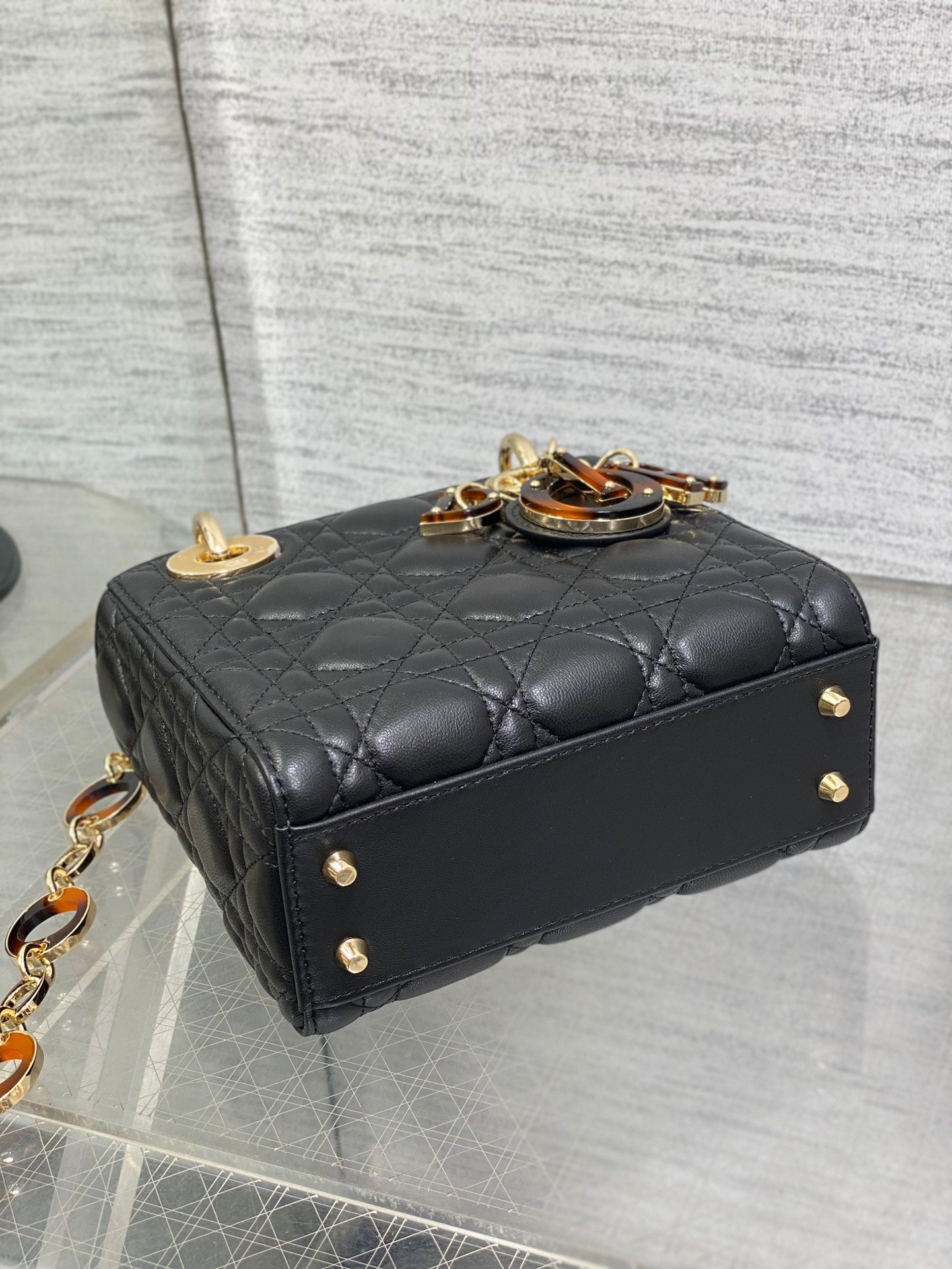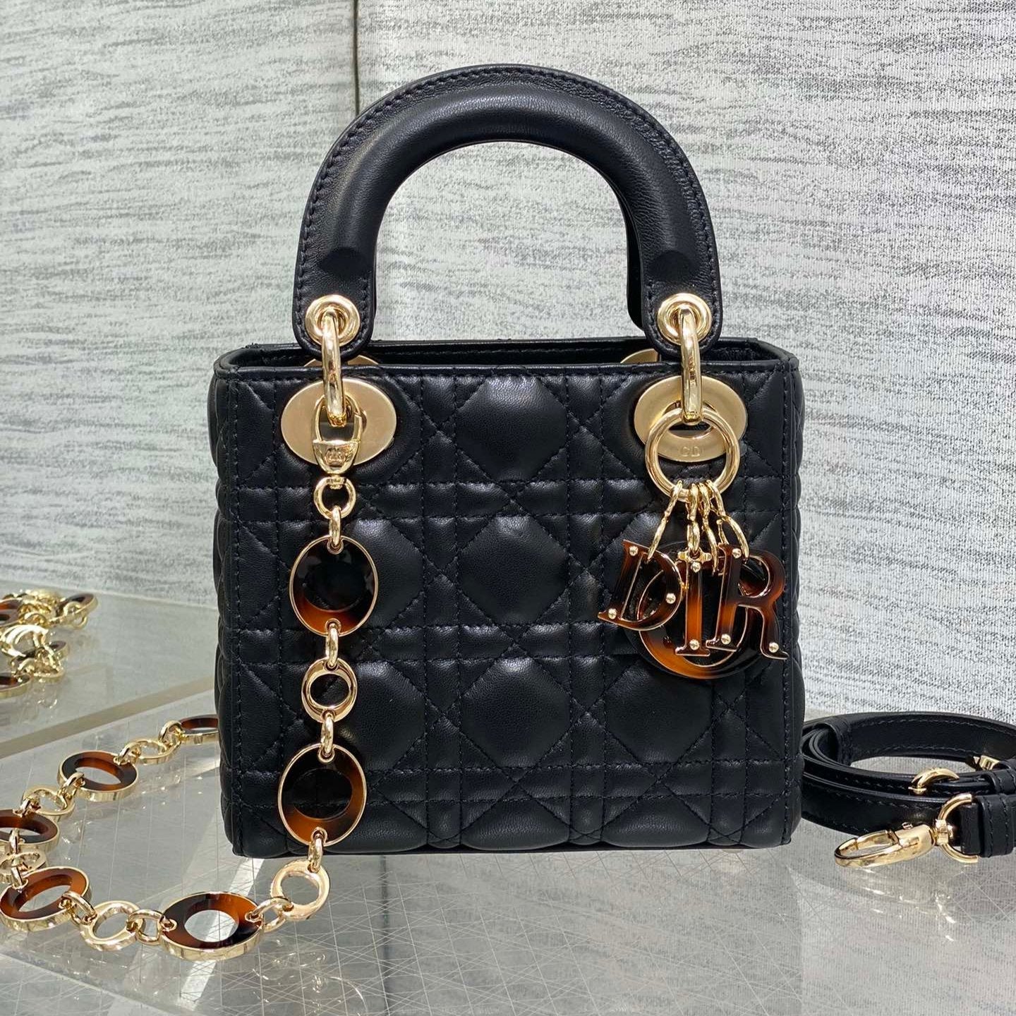 CD Lady 17cm Black Lambskin Brown Charm