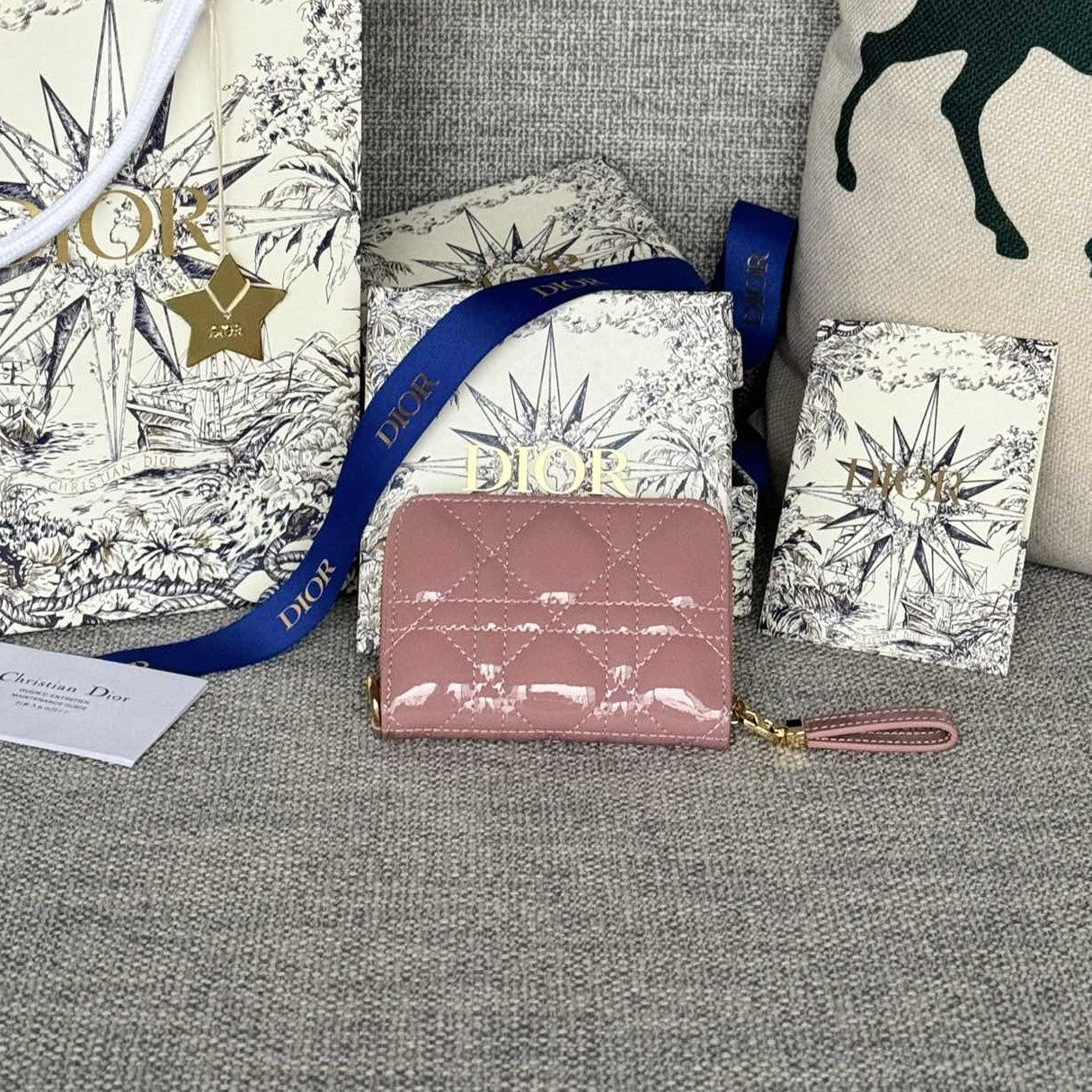 CD Logo Caro 11cm Compact Wallet Shiny Pink Calfskin