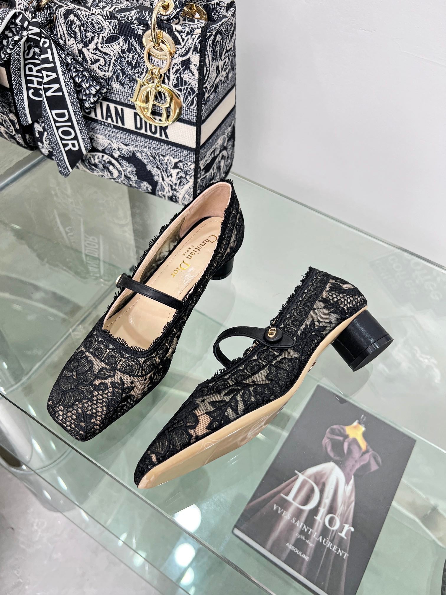 cd mary jane transparent mesh embroidered black flower motif