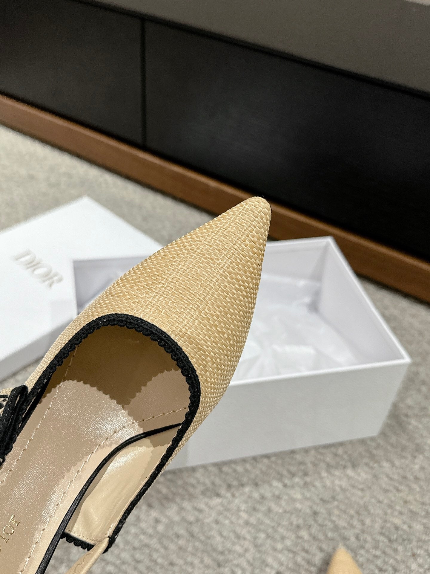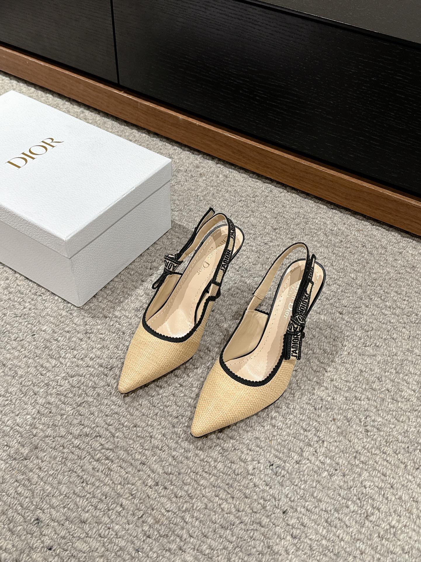 cd slingback 100 beige raffia lambskin