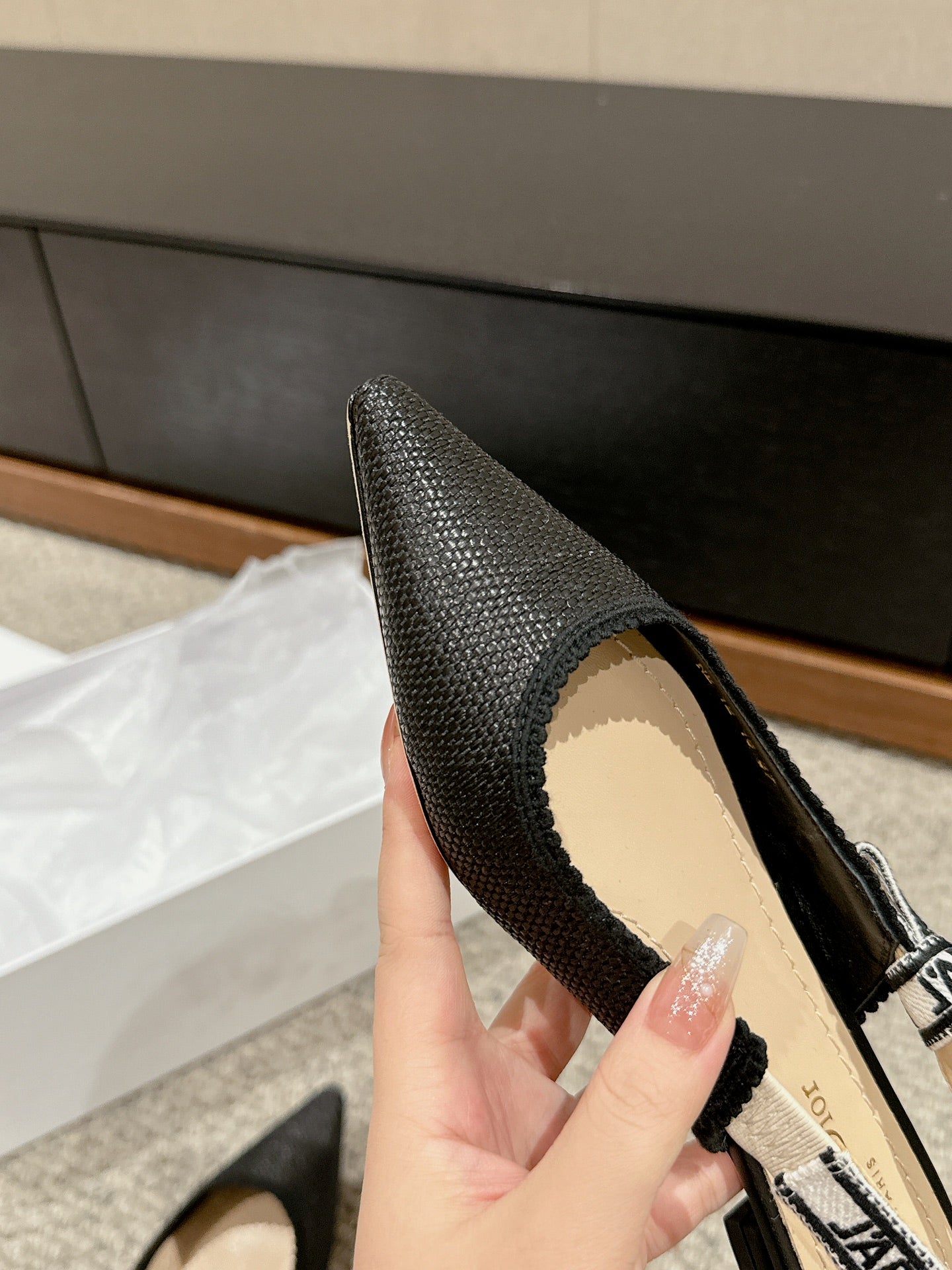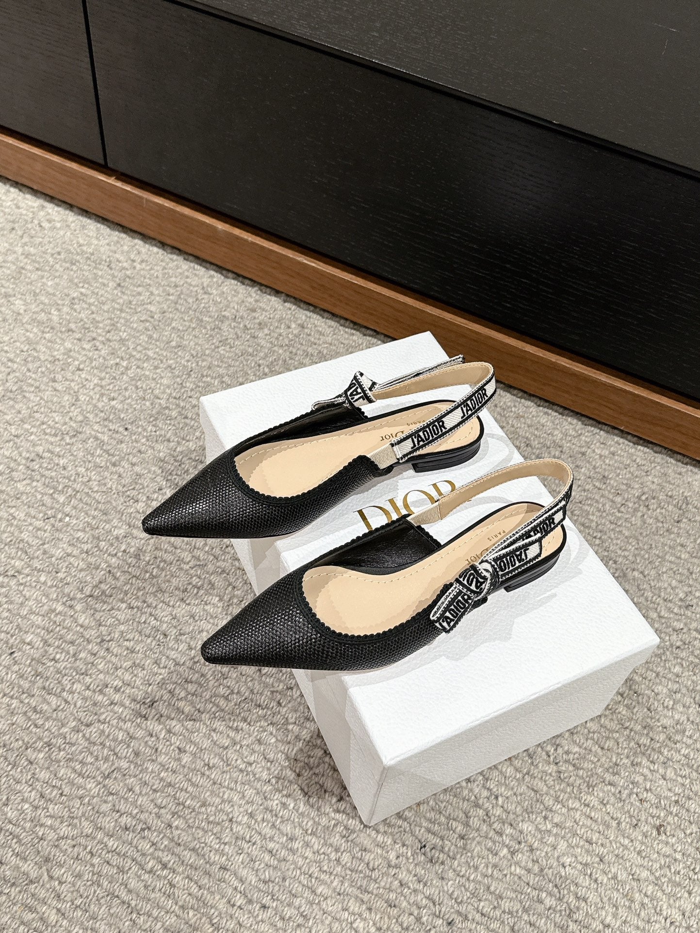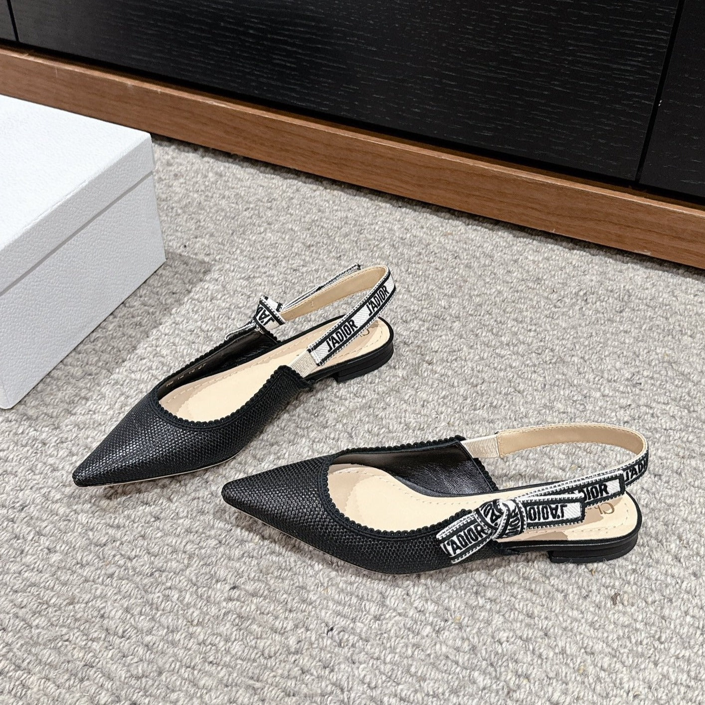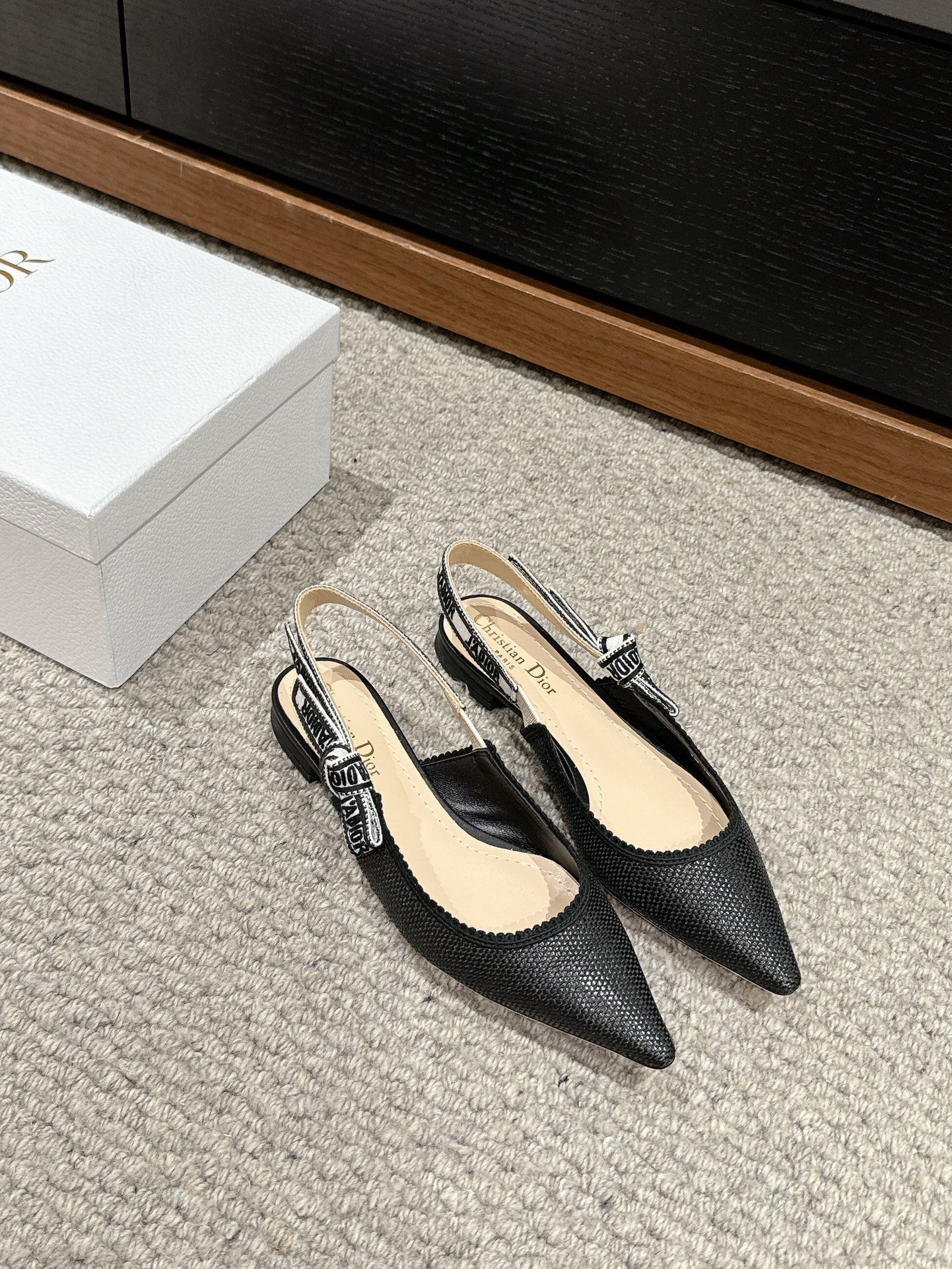 cd slingback flat black raffia lambskin