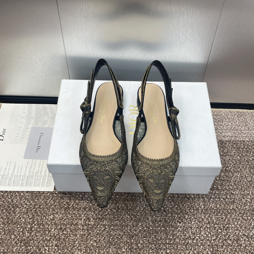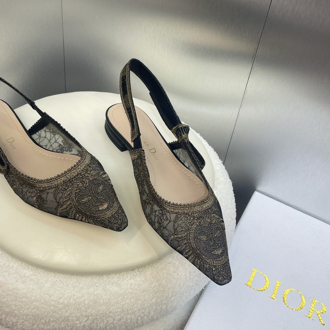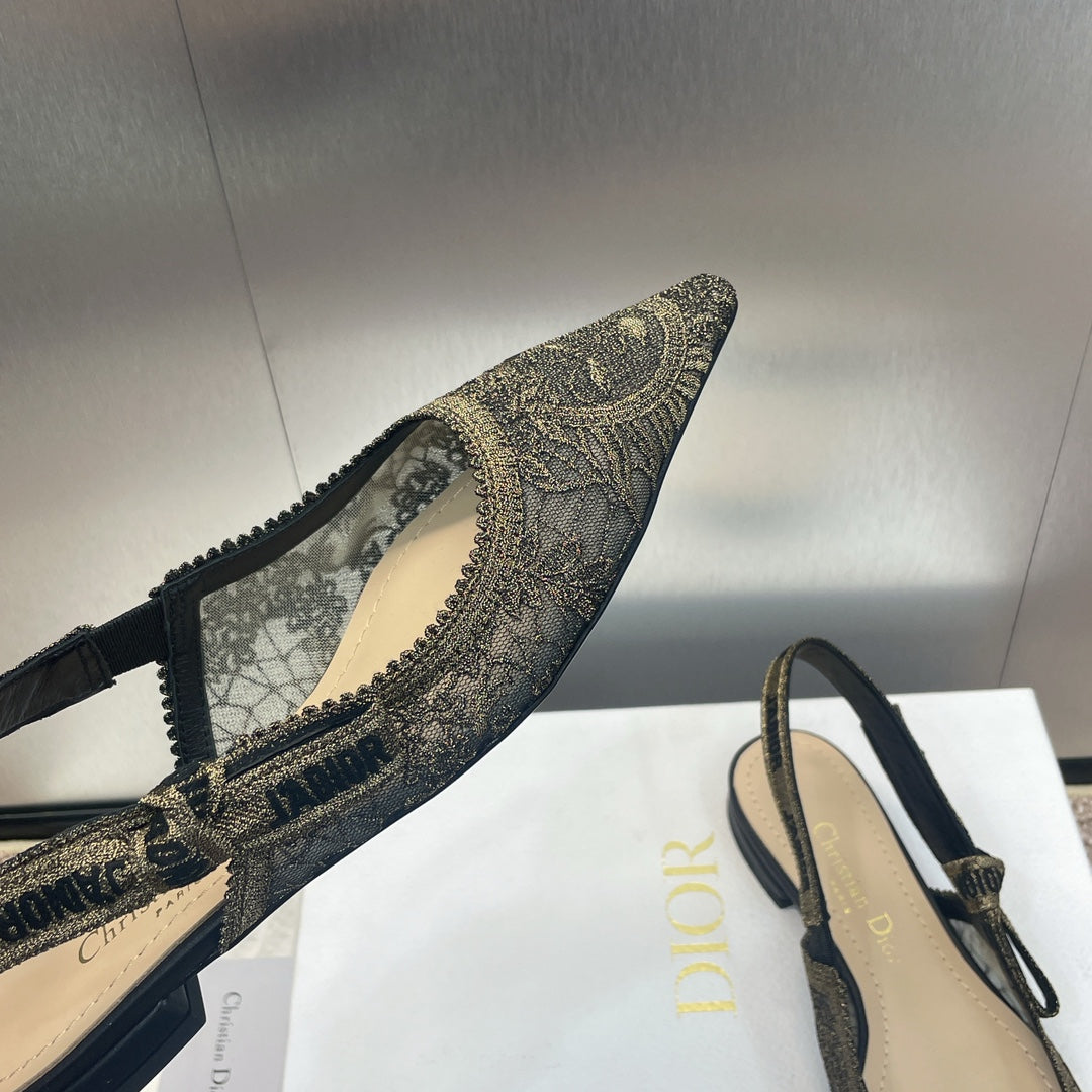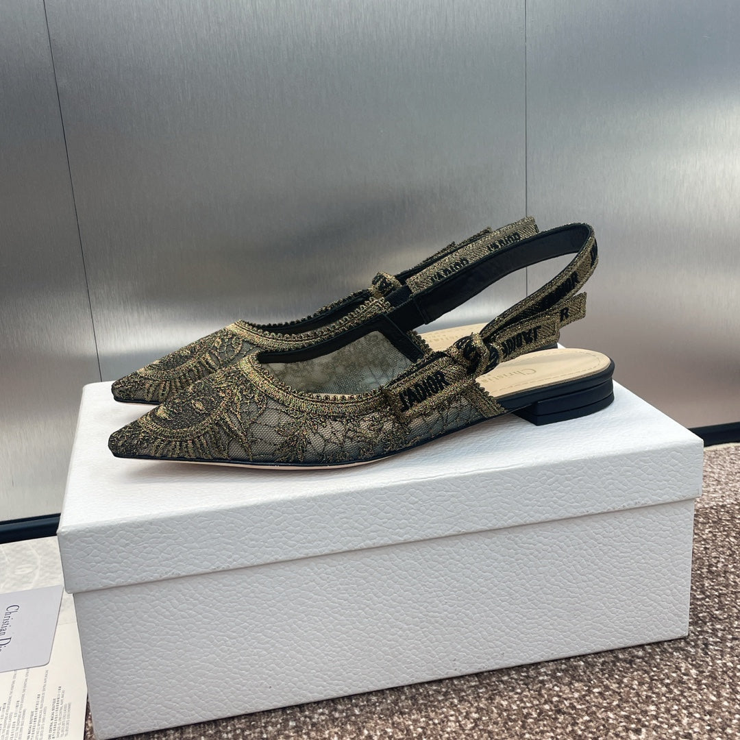 cd slingback flat transparent mesh embroidered black sun motif