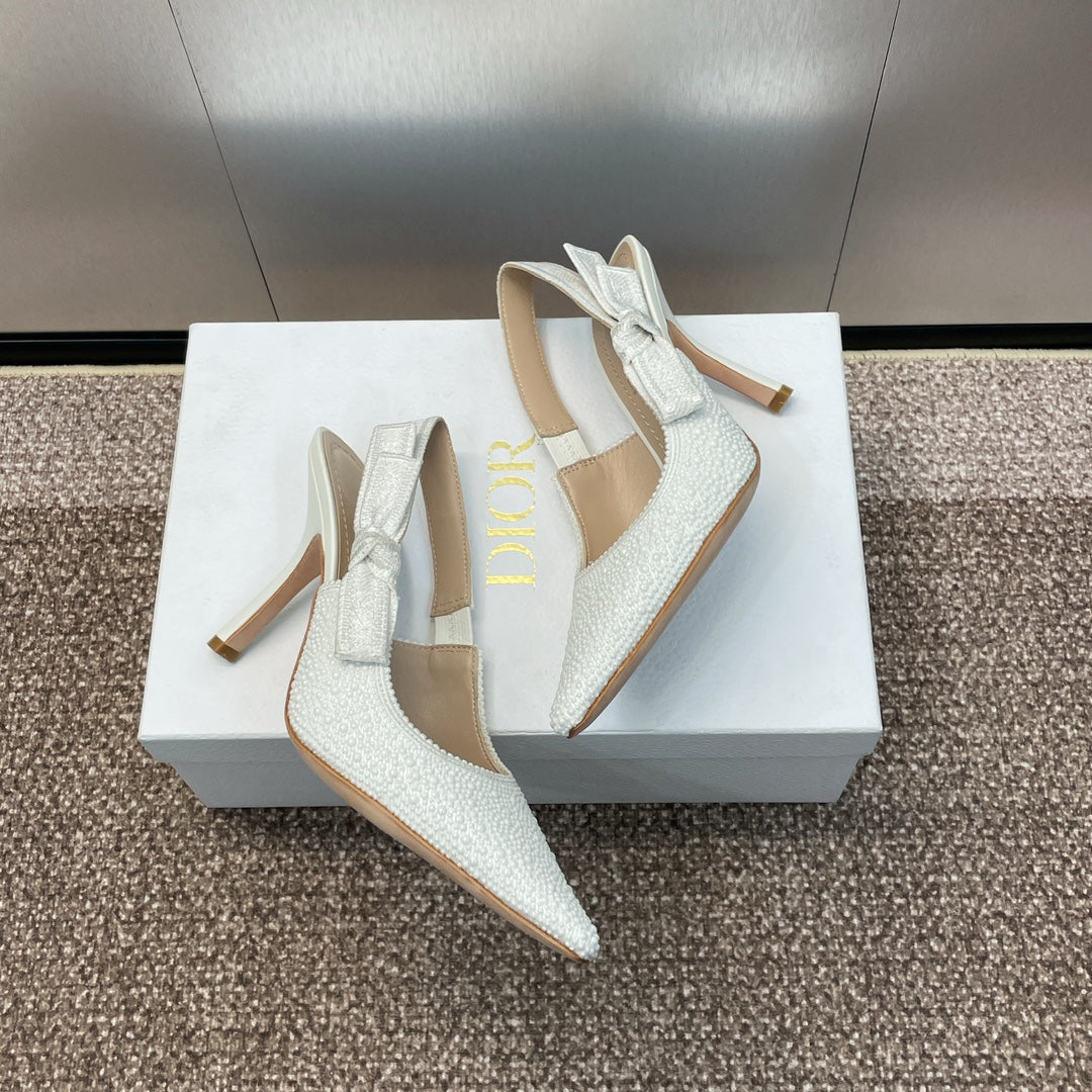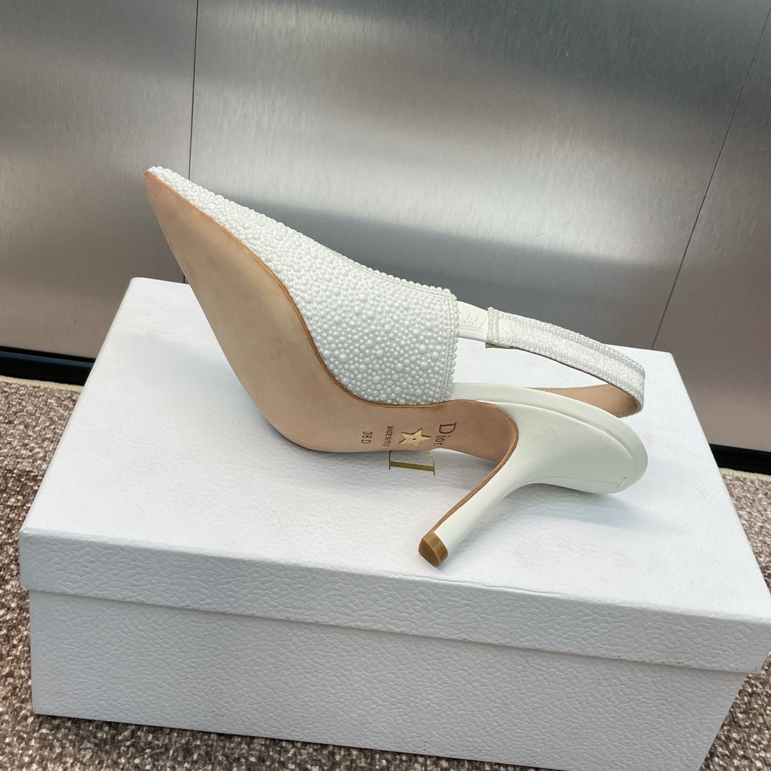 cd slingback pump 95 embroidered cotton white calfskin resin pearl