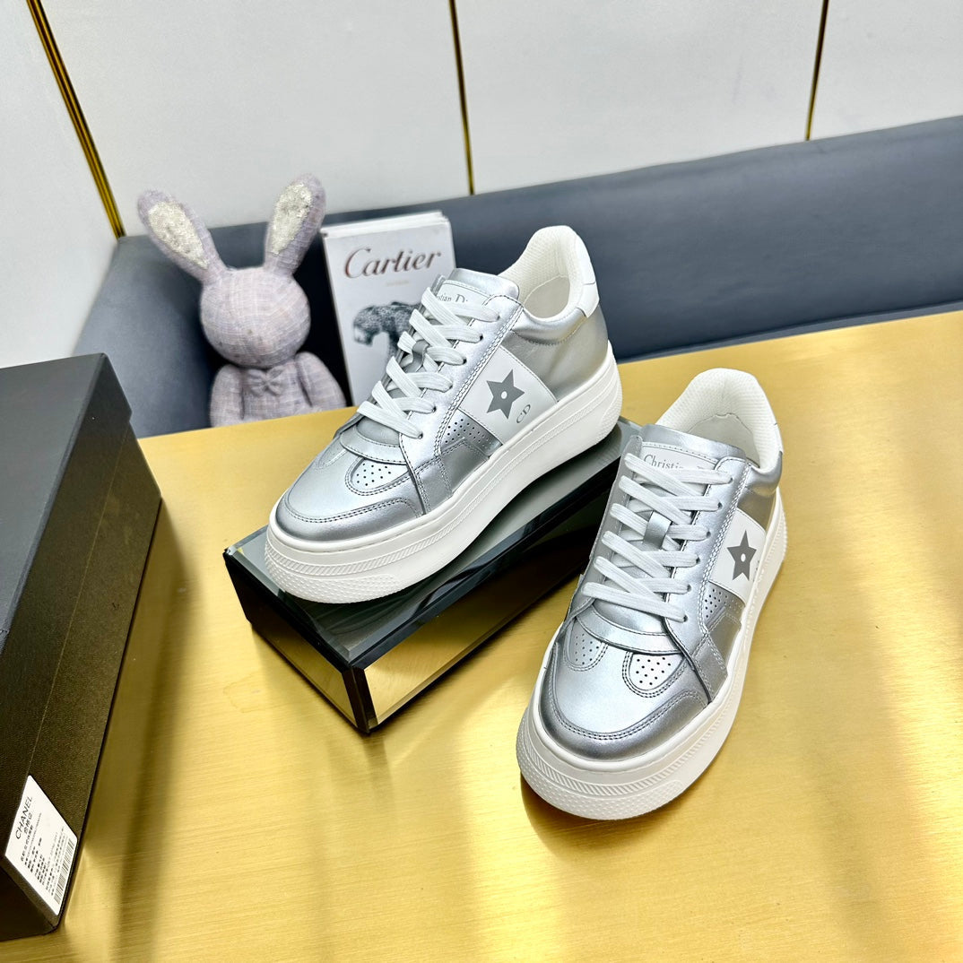 CD Star Platform Sneaker In Silver Mix White Calfskin 111090