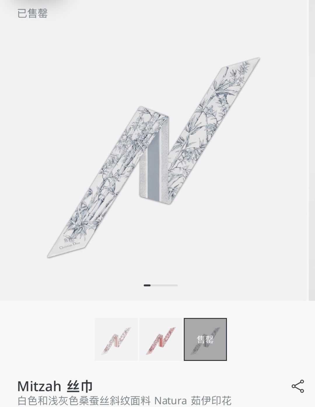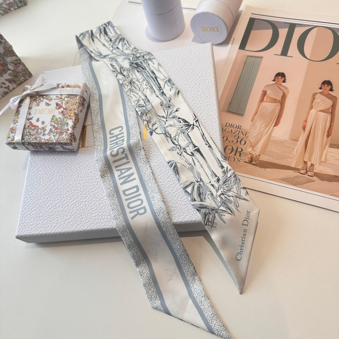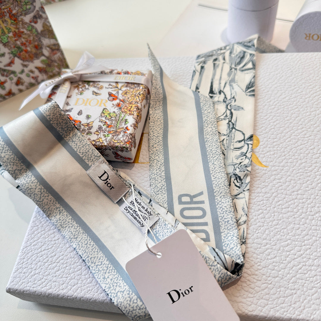 CD Twilly Mini Scarf 105cm Baby Blue Mulberry Silk 924766