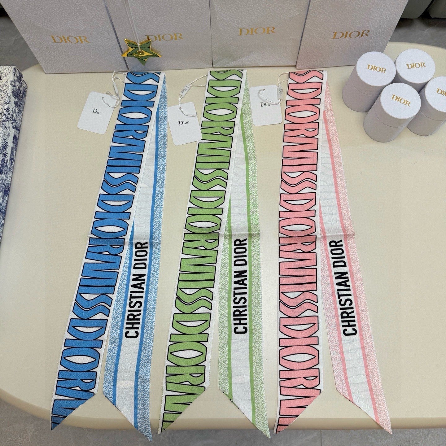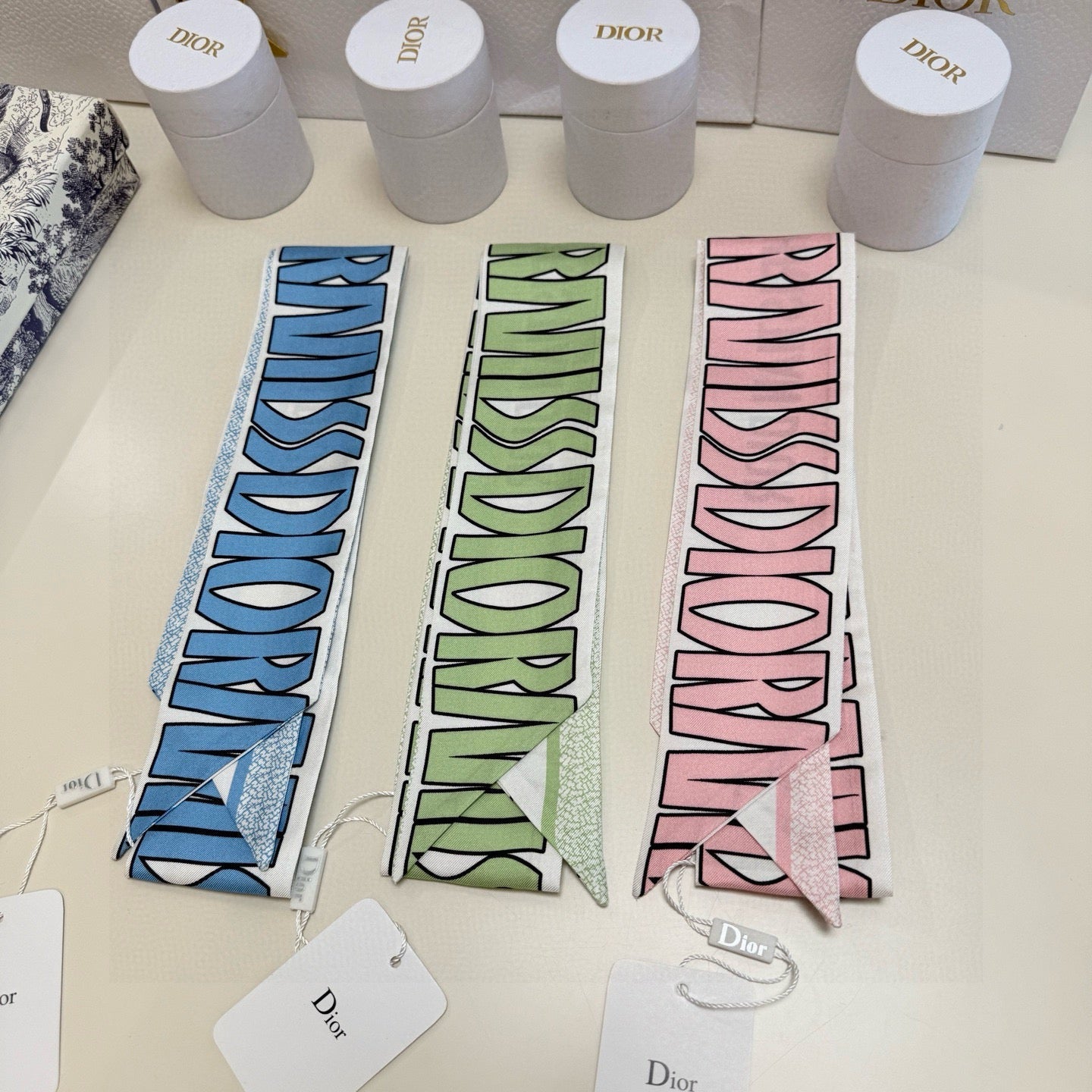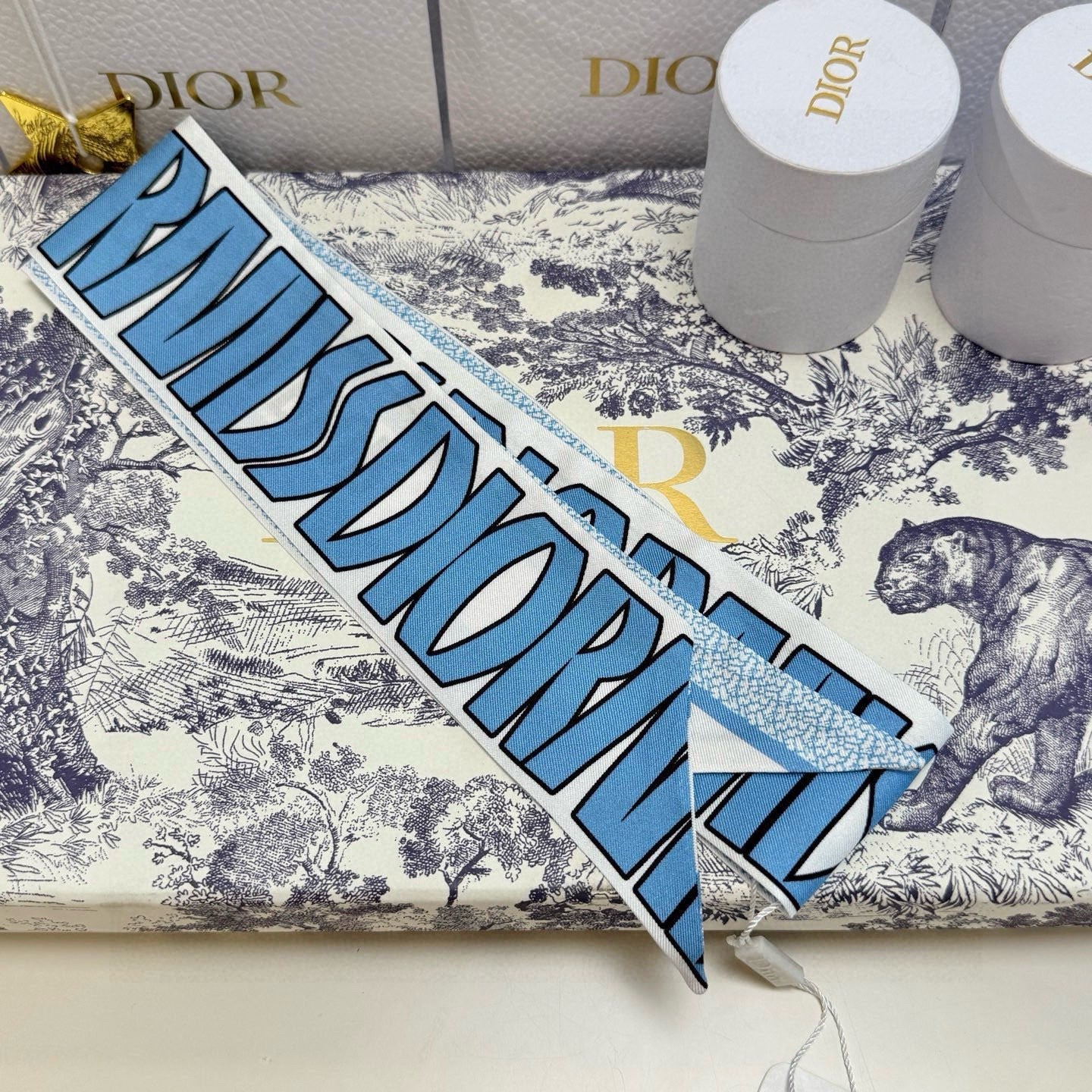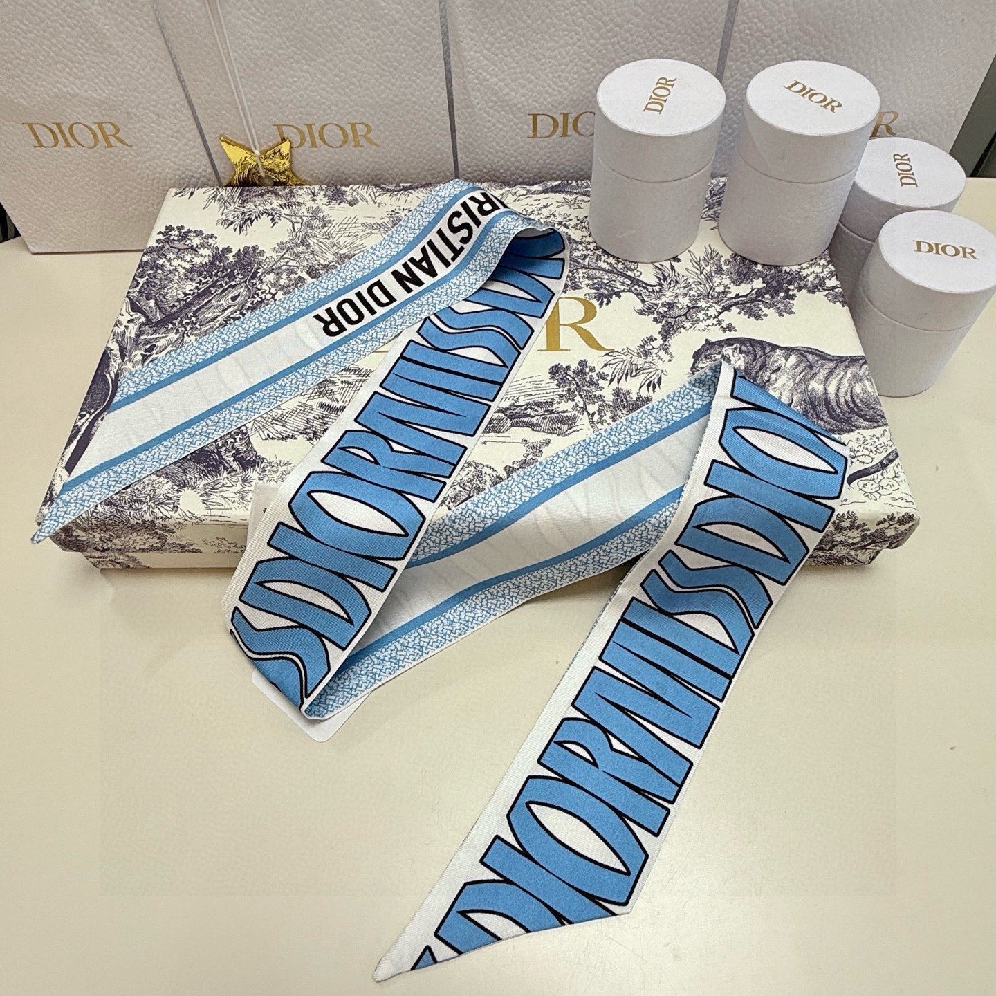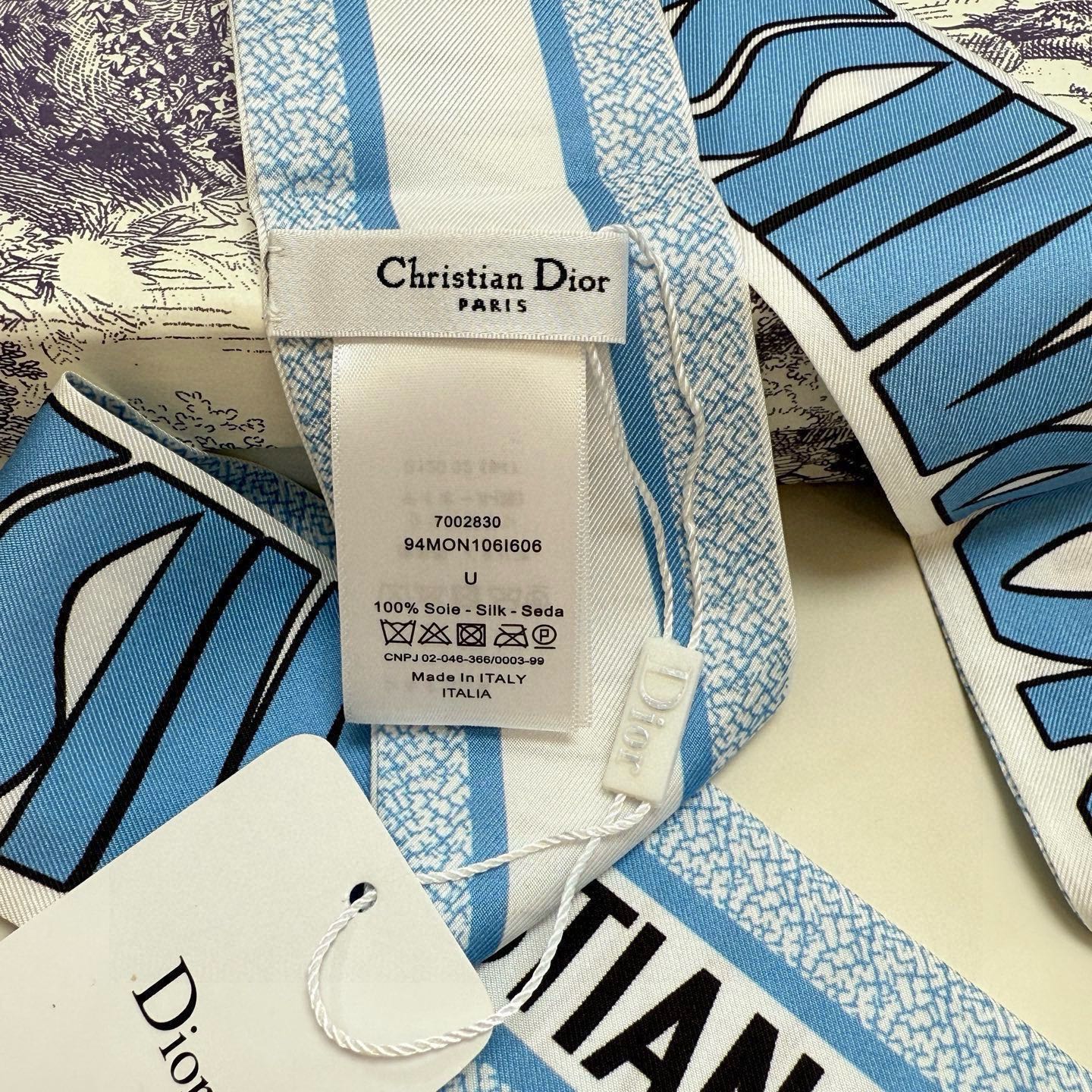 CD Twilly Mini Scarf 105cm Blue Mulberry Silk 957052