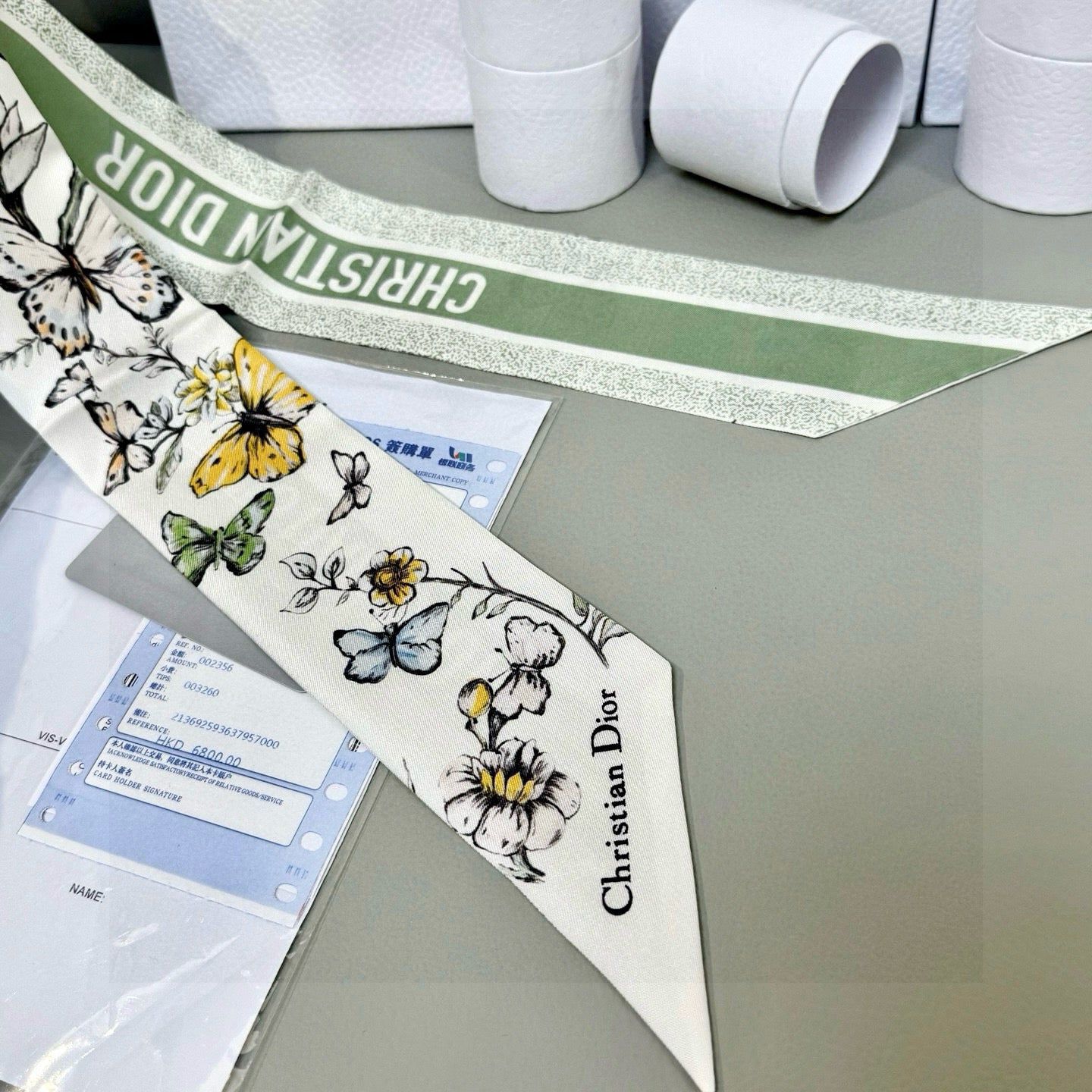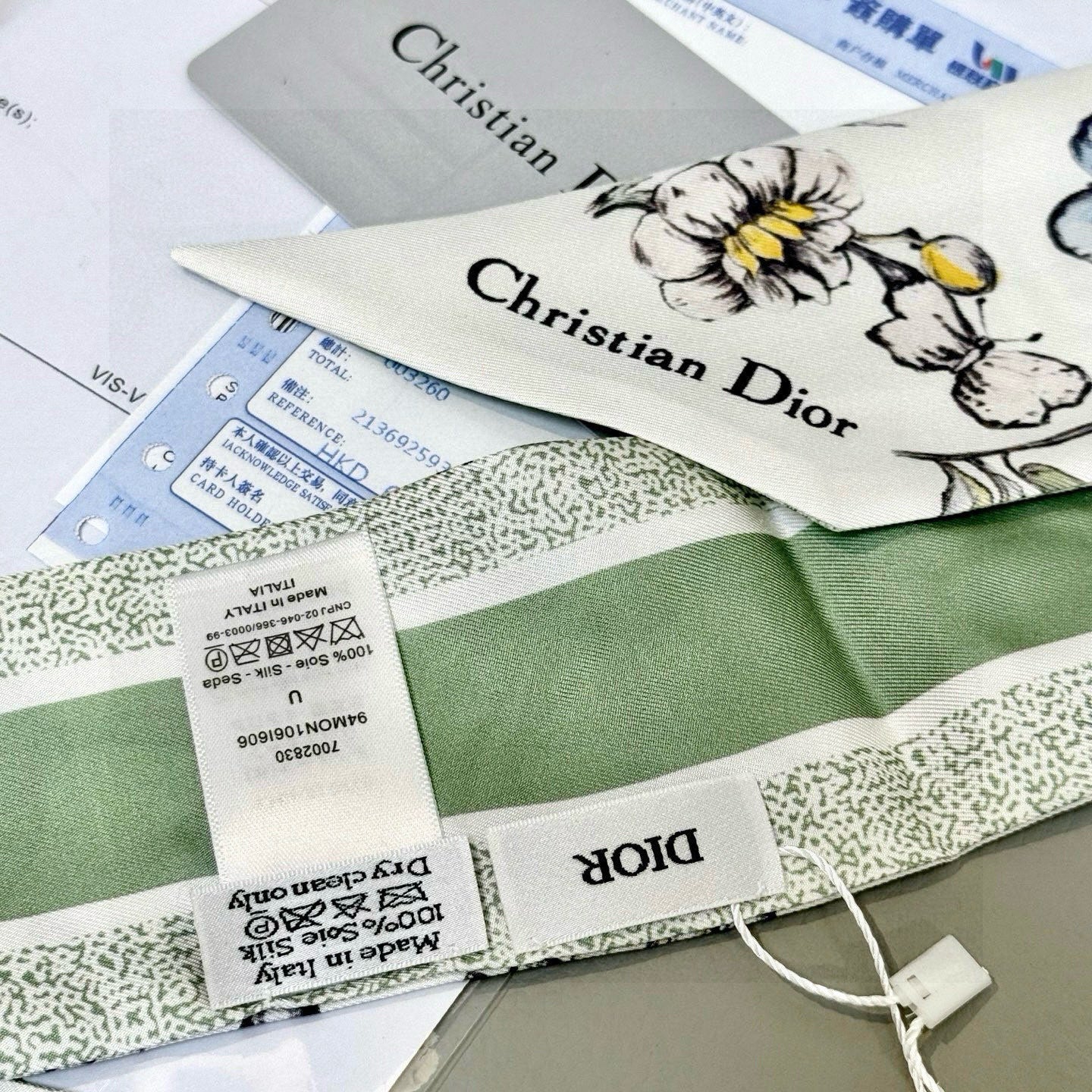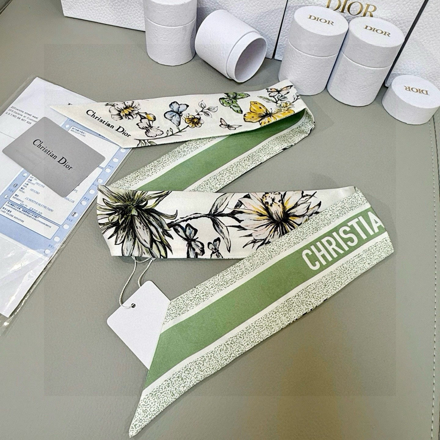 CD Twilly Mini Scarf 105cm Green Black Mulberry Silk 935251
