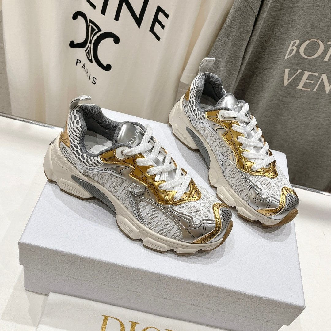 CD Vibe Sneaker White Mix Grey Gold Polyester Mesh Fabric And Cowhide