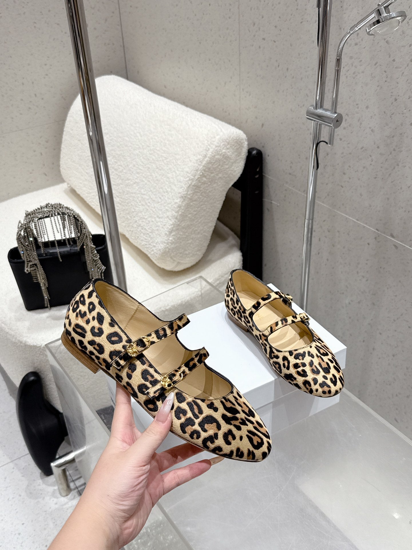 Celine 25 Ballet Flat Leopard Pony Hair mix Cowhide 554201