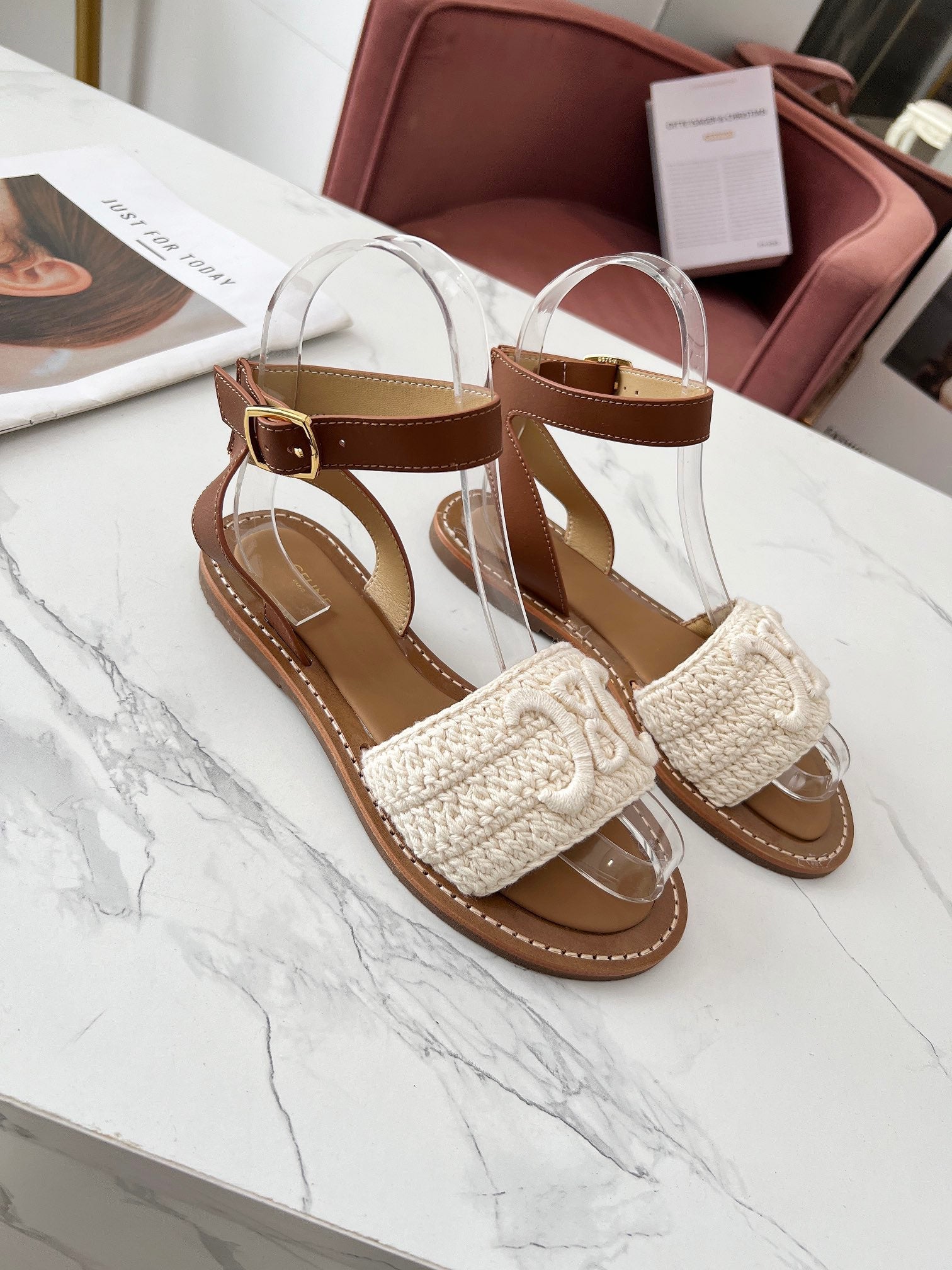 Celine 25C Lympia Sandal White Fabric with Calfskin 238175