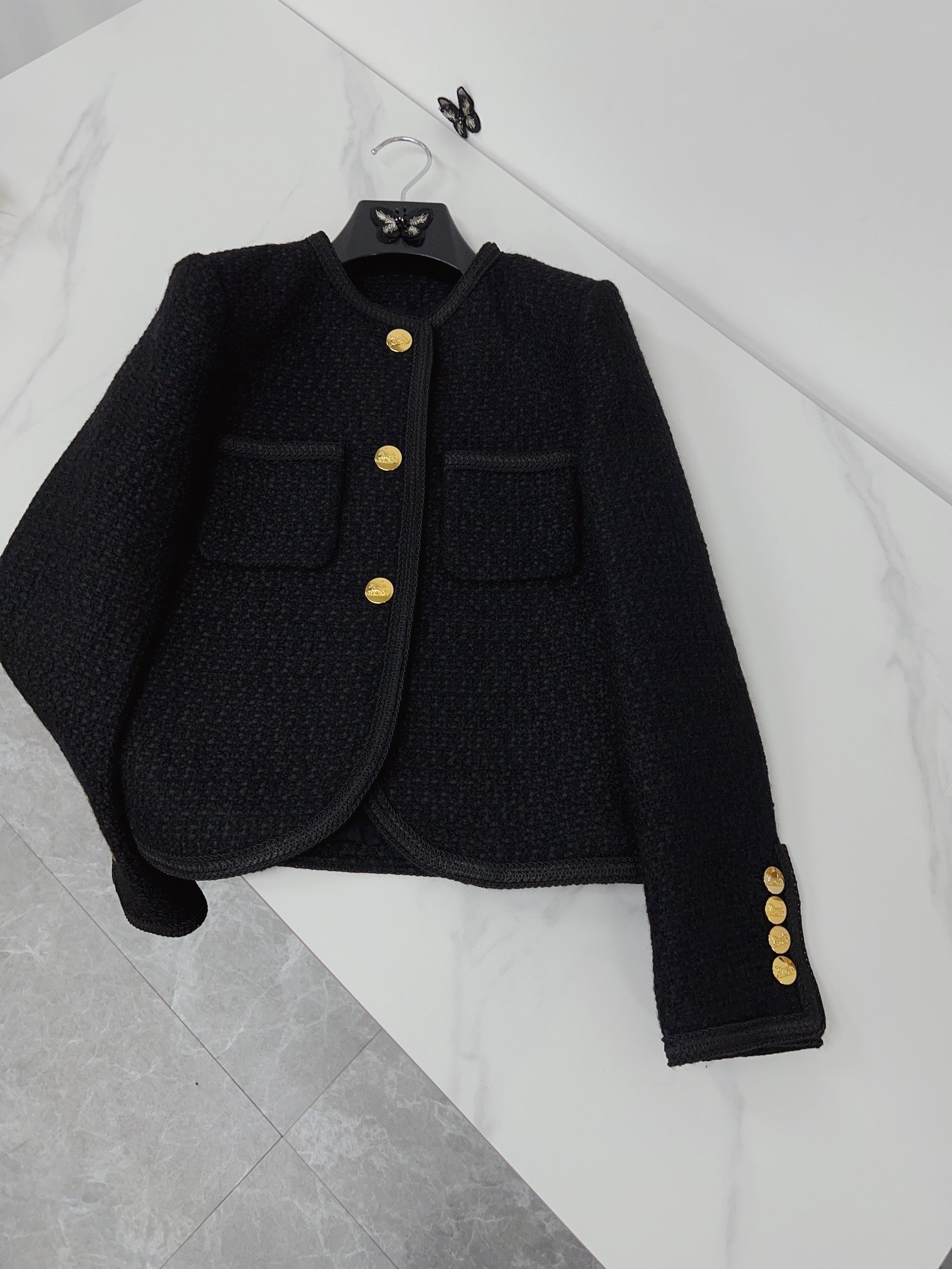 Celine Jacket Black Gold Wool Cotton 290442
