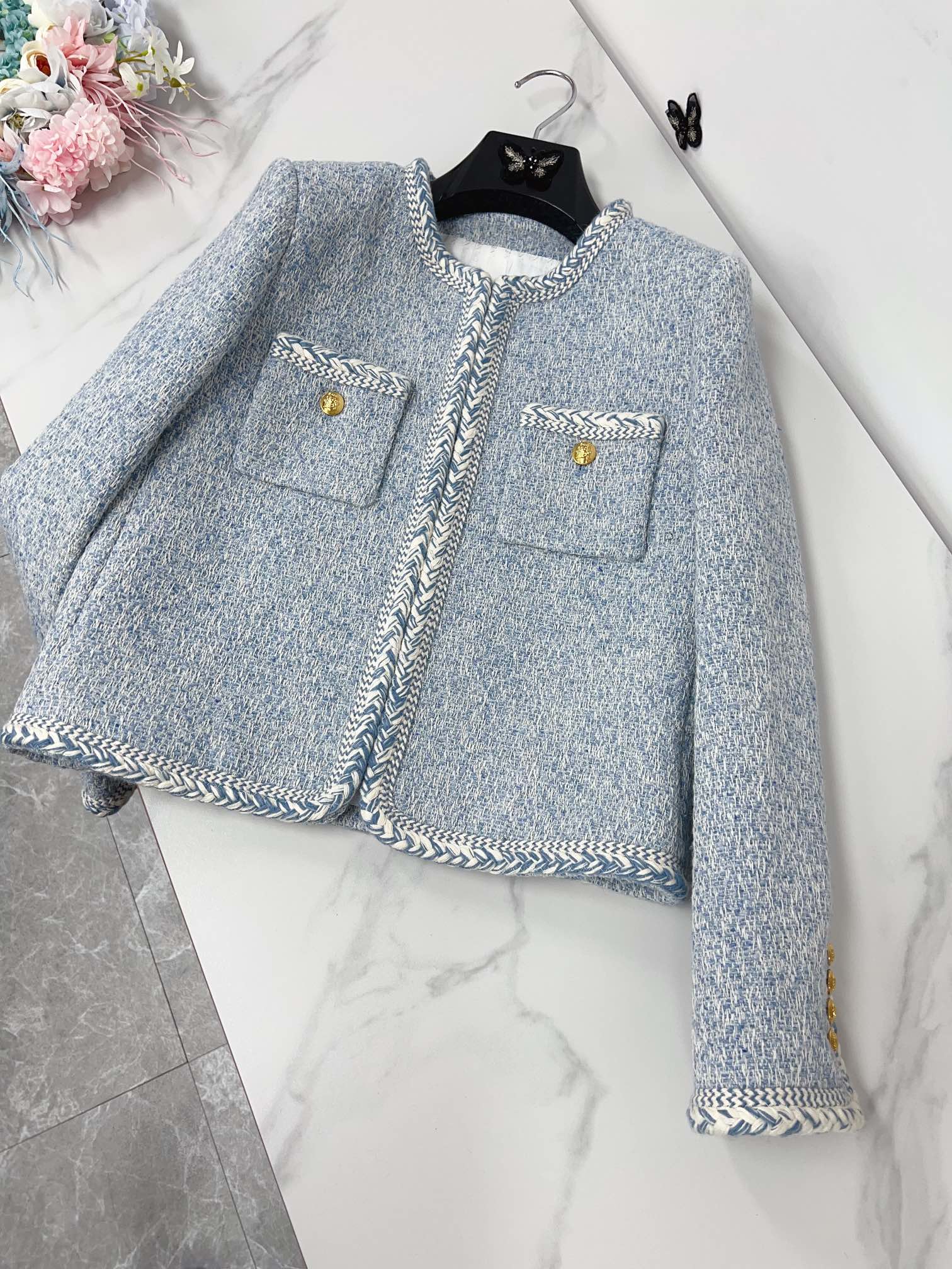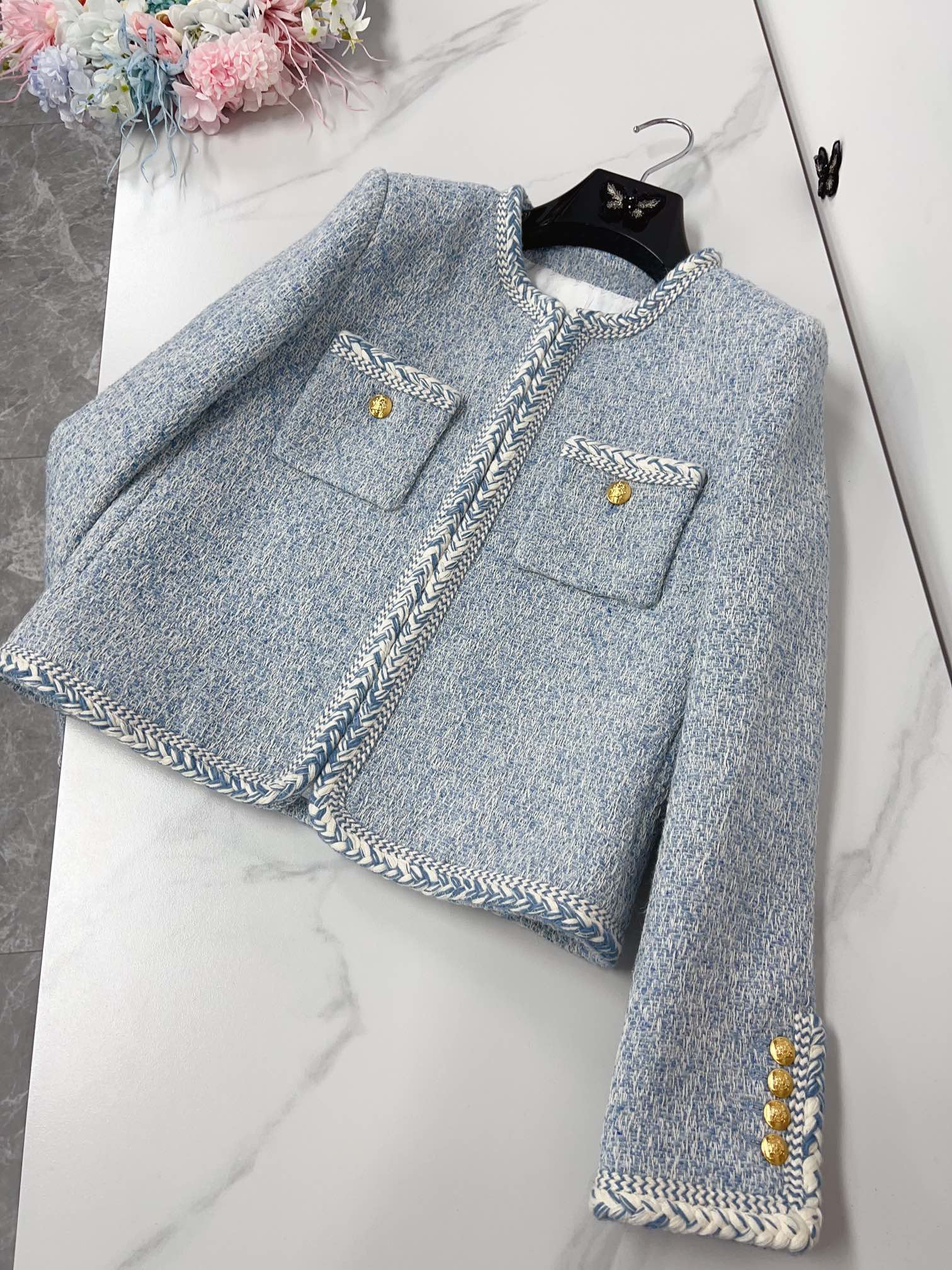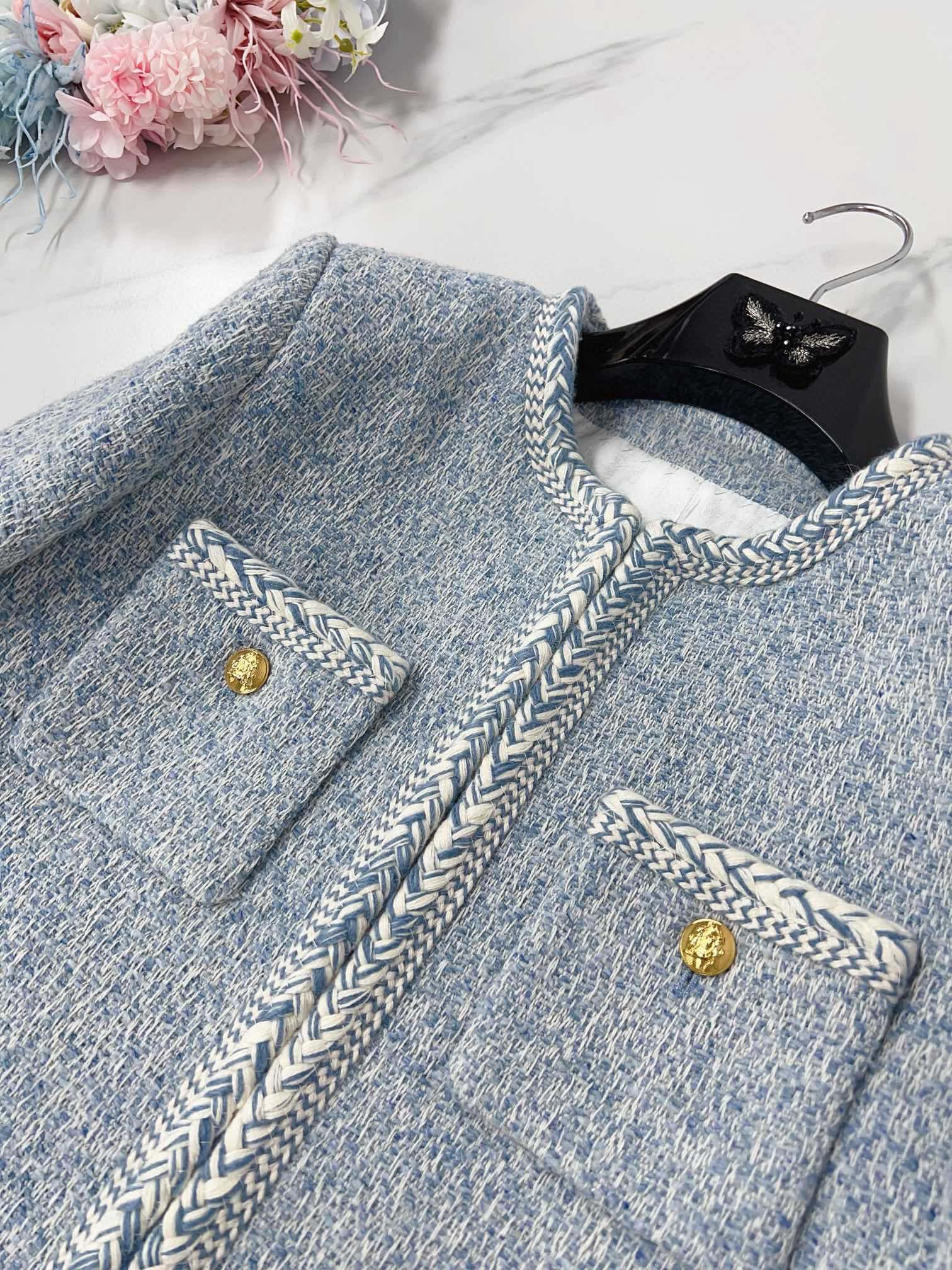 Celine Jacket Light Blue Gold Wool Cotton 290465