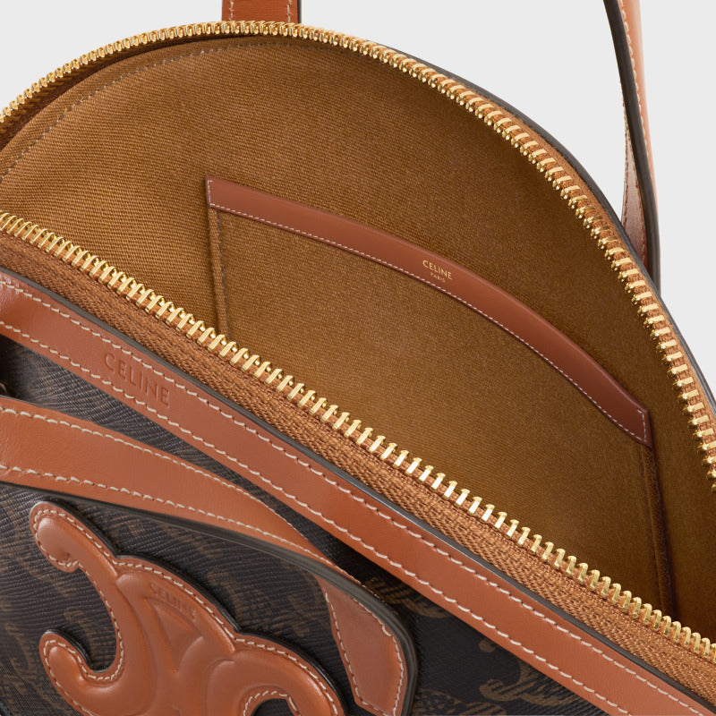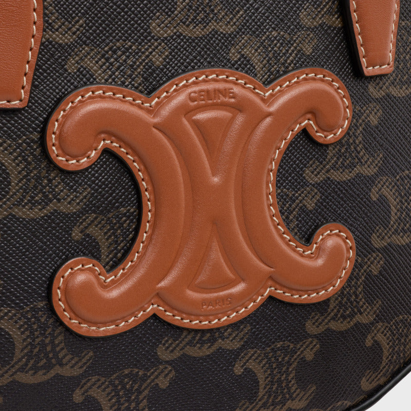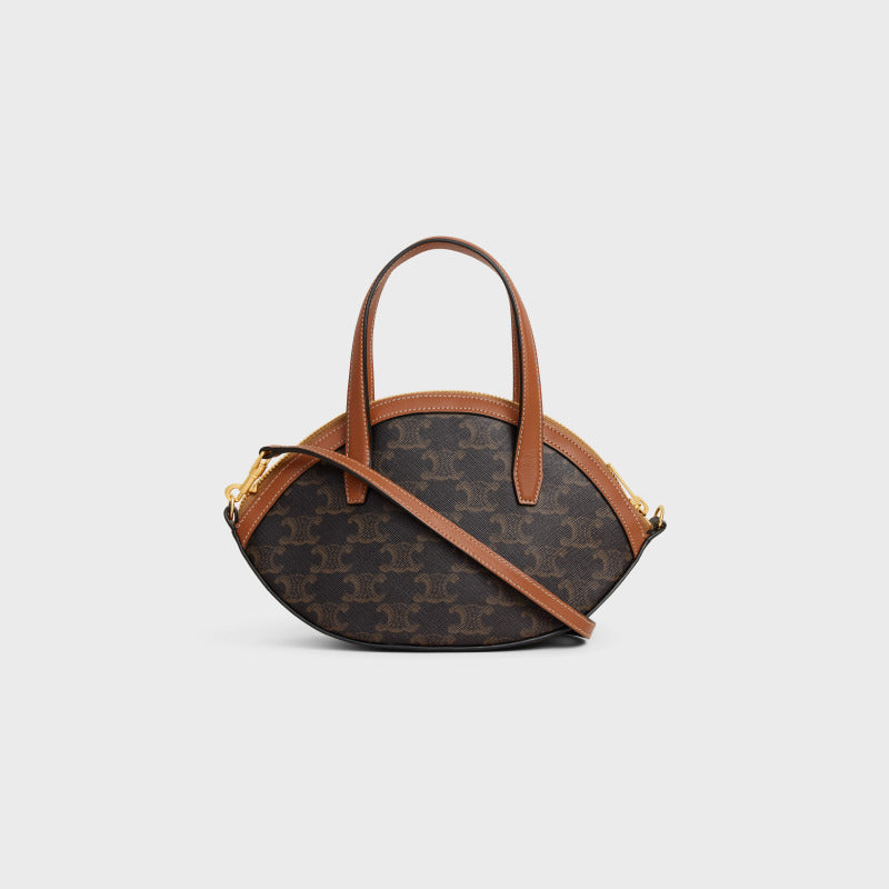 Celine Oval Bag 24cm Triomphe Canvas Brown Calfskin