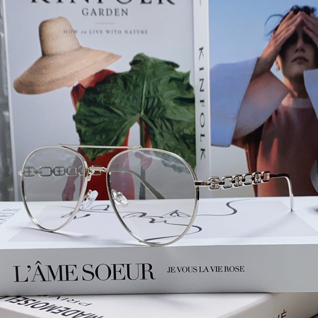 CHAIN PILOT SUNGLASS 581379 IN SILVER METAL LIGHT GREY SMOKE LENSES