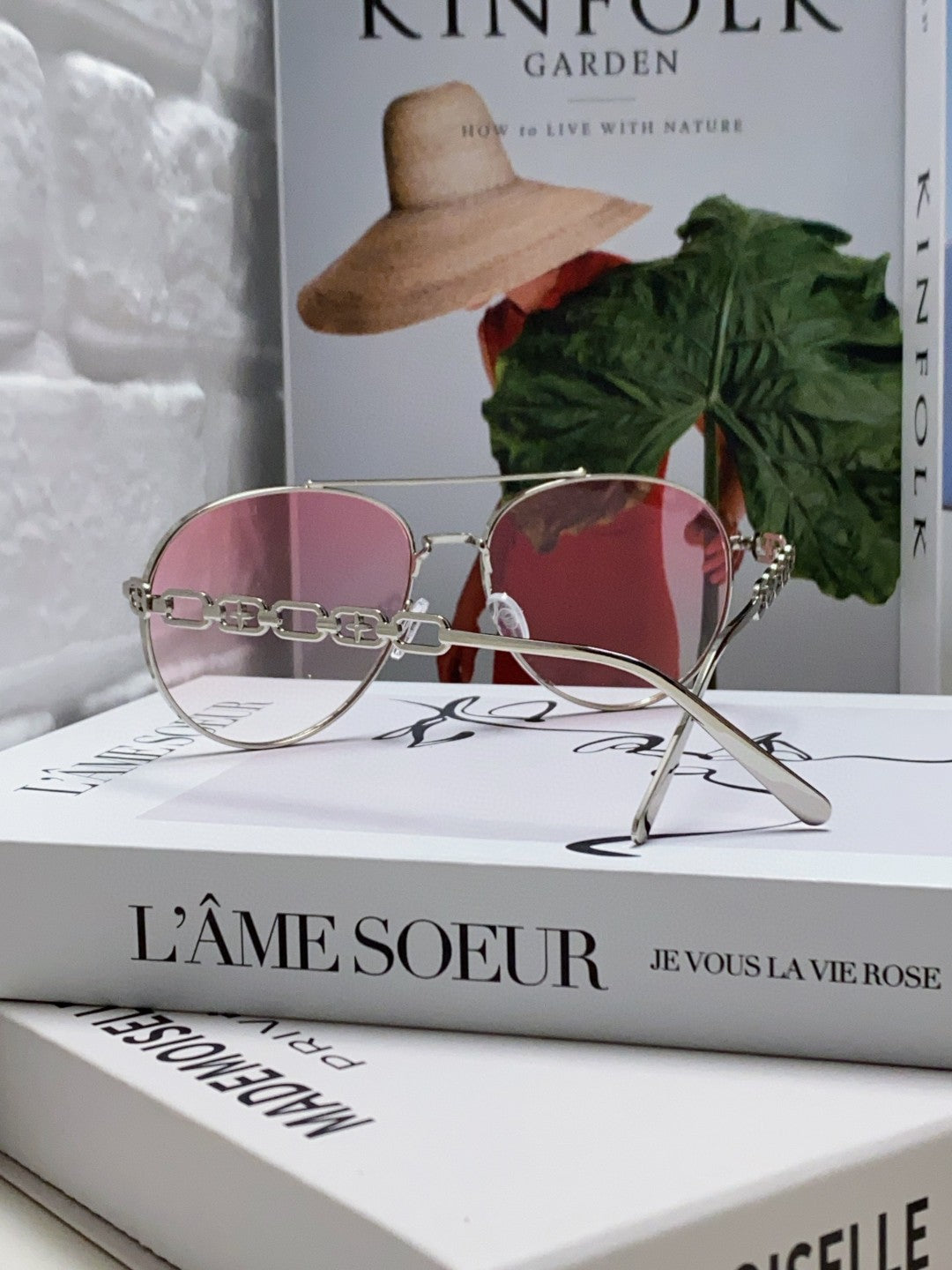 CHAIN PILOT SUNGLASS 581380 IN SILVER METAL PINK SMOKE LENSES