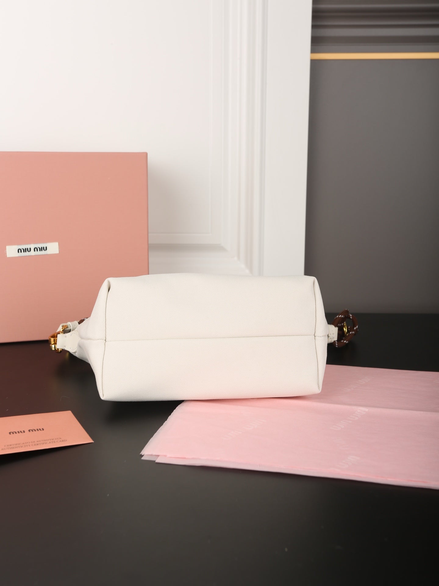 CHAIN SHOULDER BAG 18 IN WHITE FABRIC GOLD HARDWARE