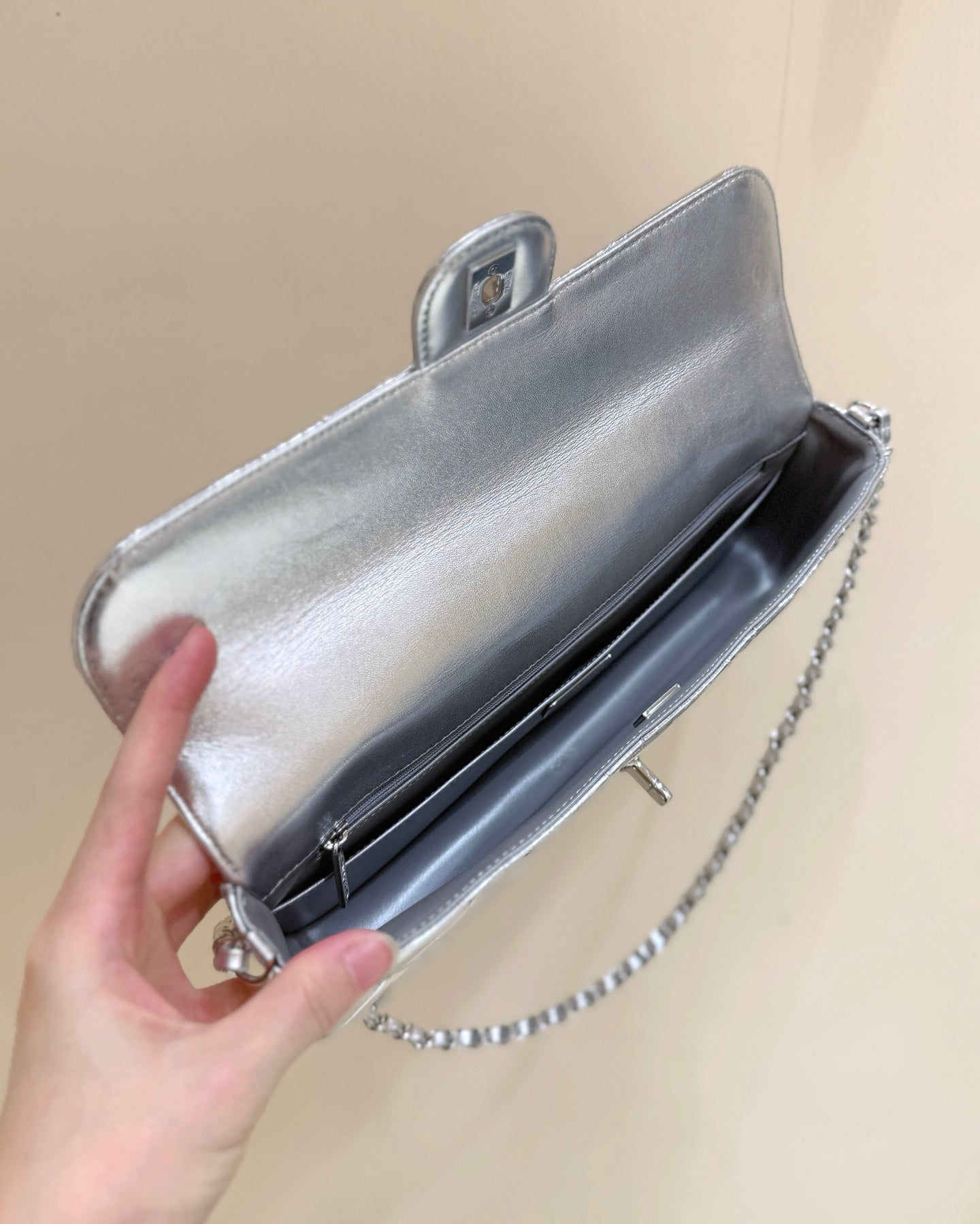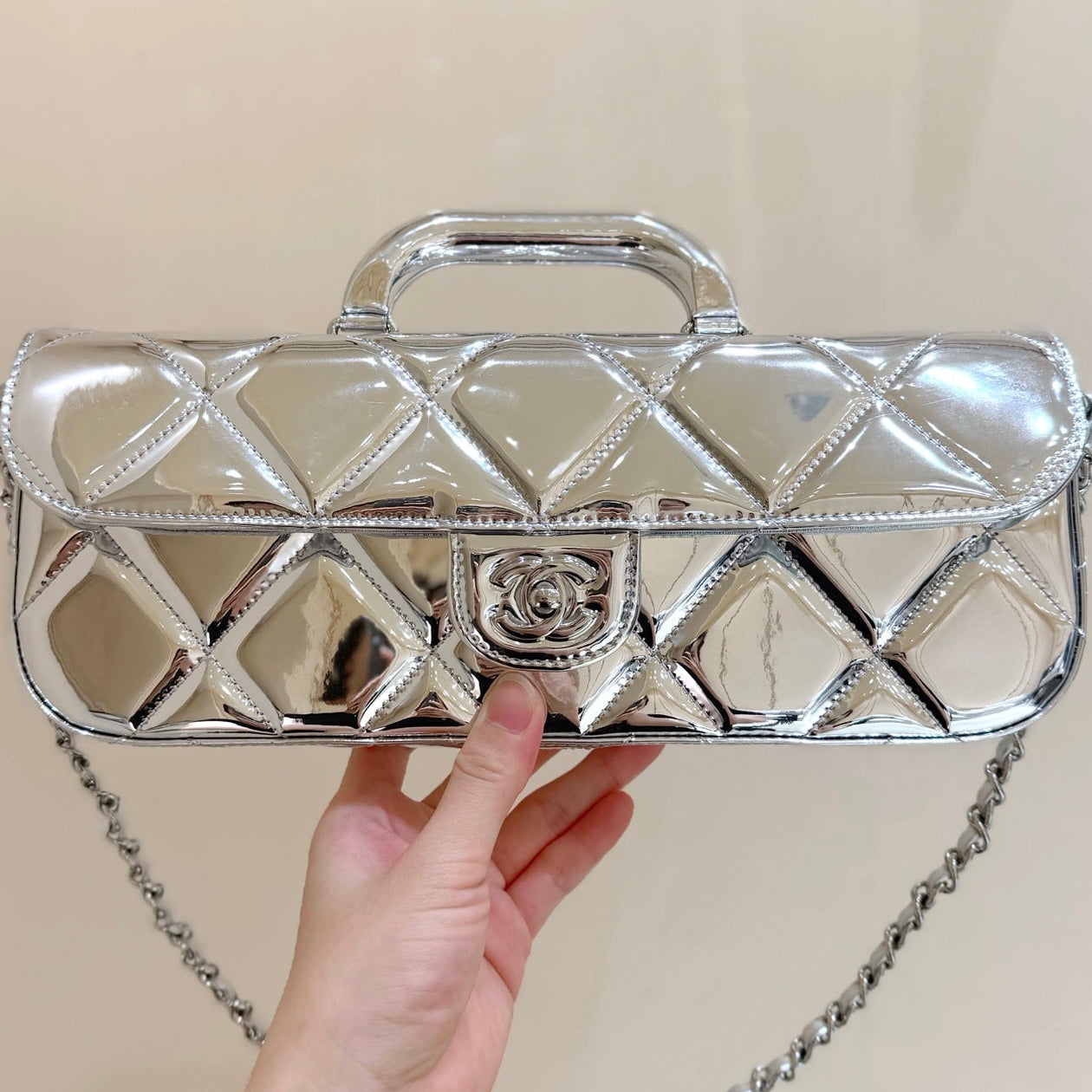 Chanel 2025 Bag 30cm Silver Shine Calfskin 345970
