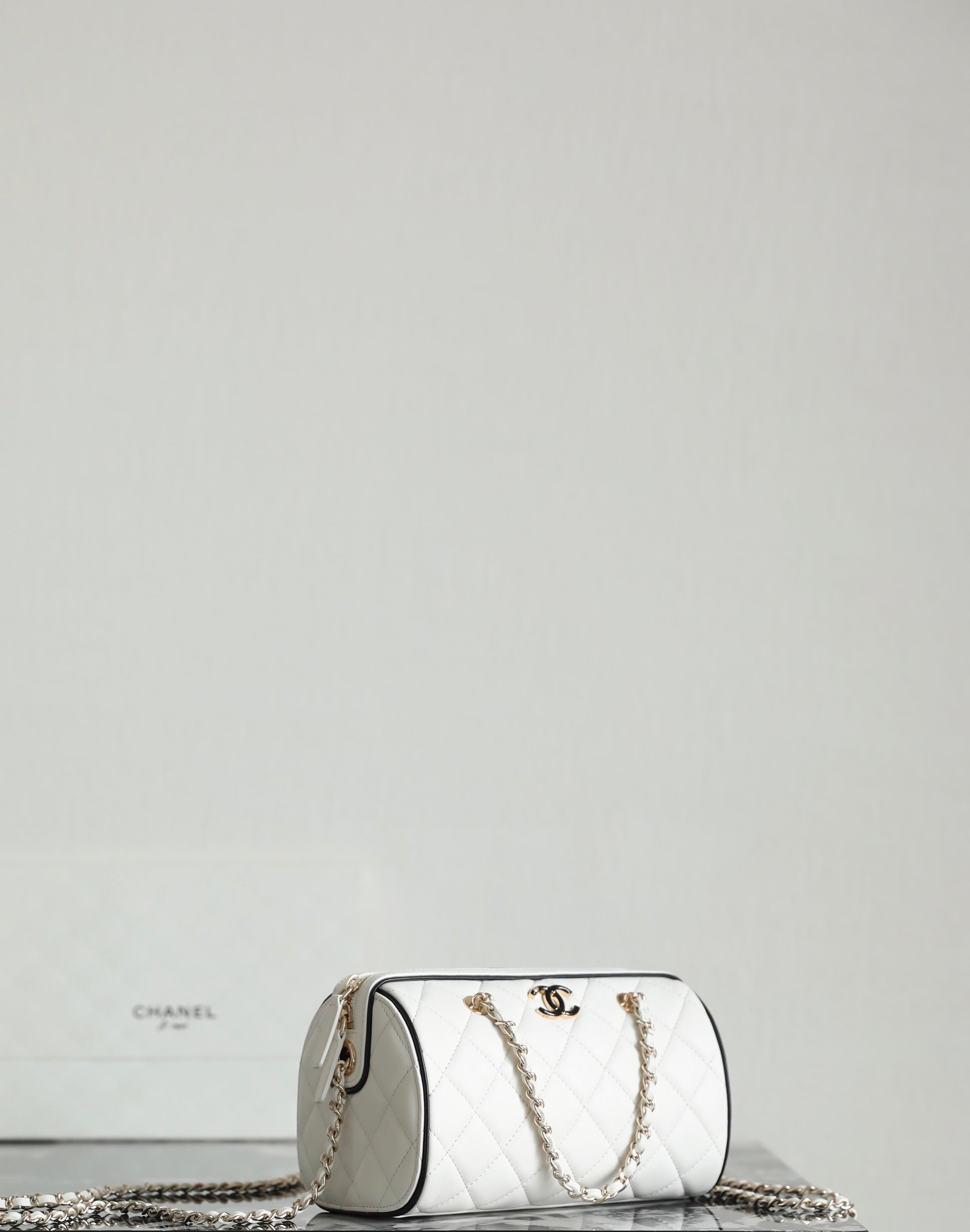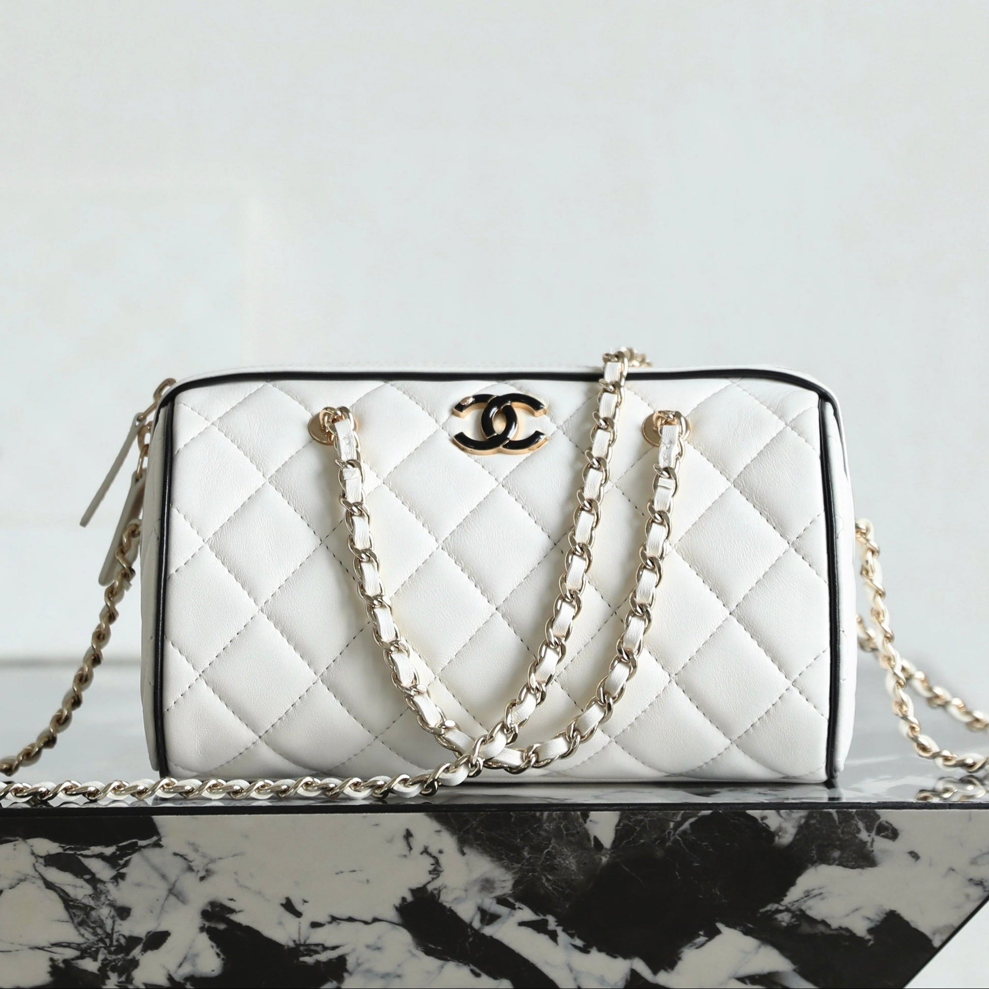 Chanel 2025 Bowling Bag White Lambskin 343004