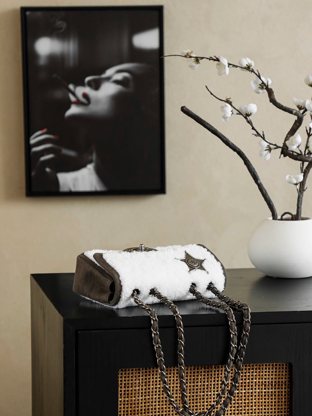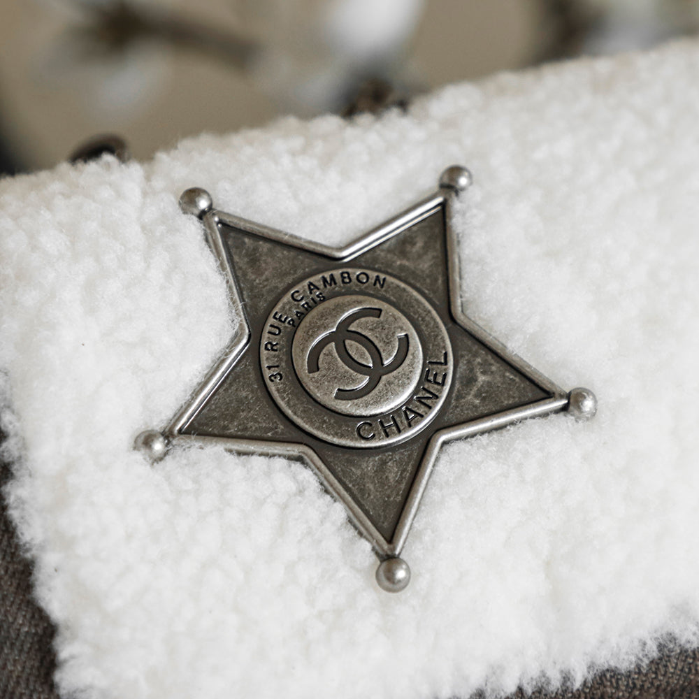 Chanel 2025 Dallas Shearling Star Bag 21cm White Dark Wool Denim 318221