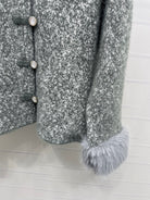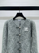 Chanel 2025 Fur-sleeved Crew Neck Cardigan Gray Polyester Wool 319595