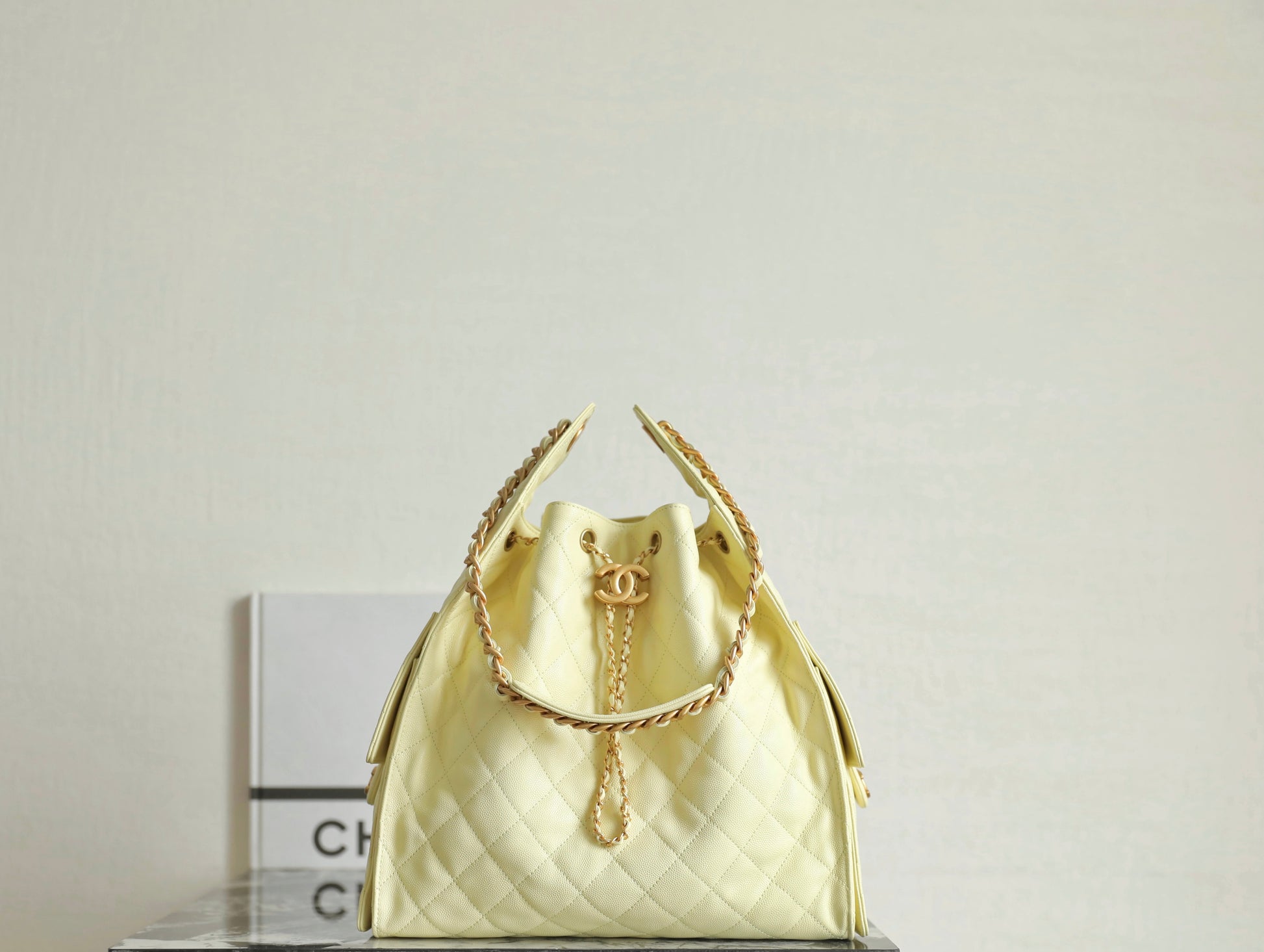 Chanel 2025 Hobo Bag 40cm Light Yellow Caviar Leather 344300