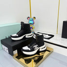Chanel 2025 Quilted High-Top Sneakers Black White Cowhide 469789