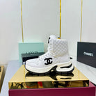 Chanel 2025 Quilted High-Top Sneakers White Black Cowhide 469790