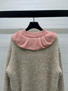 Chanel 2025 Ruffled Collar Shimmering Sweater Beige Pink Polyester Wool 319565