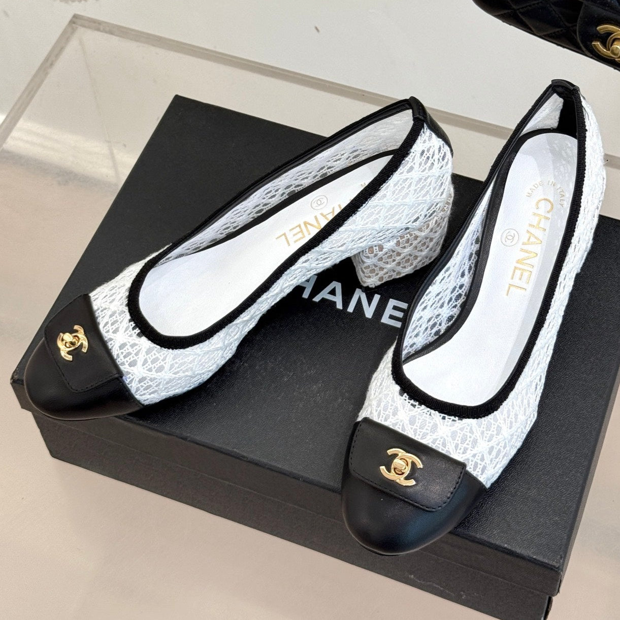 Chanel 25 Ballet Flat 50mm White Black Woven Lambskin 473053