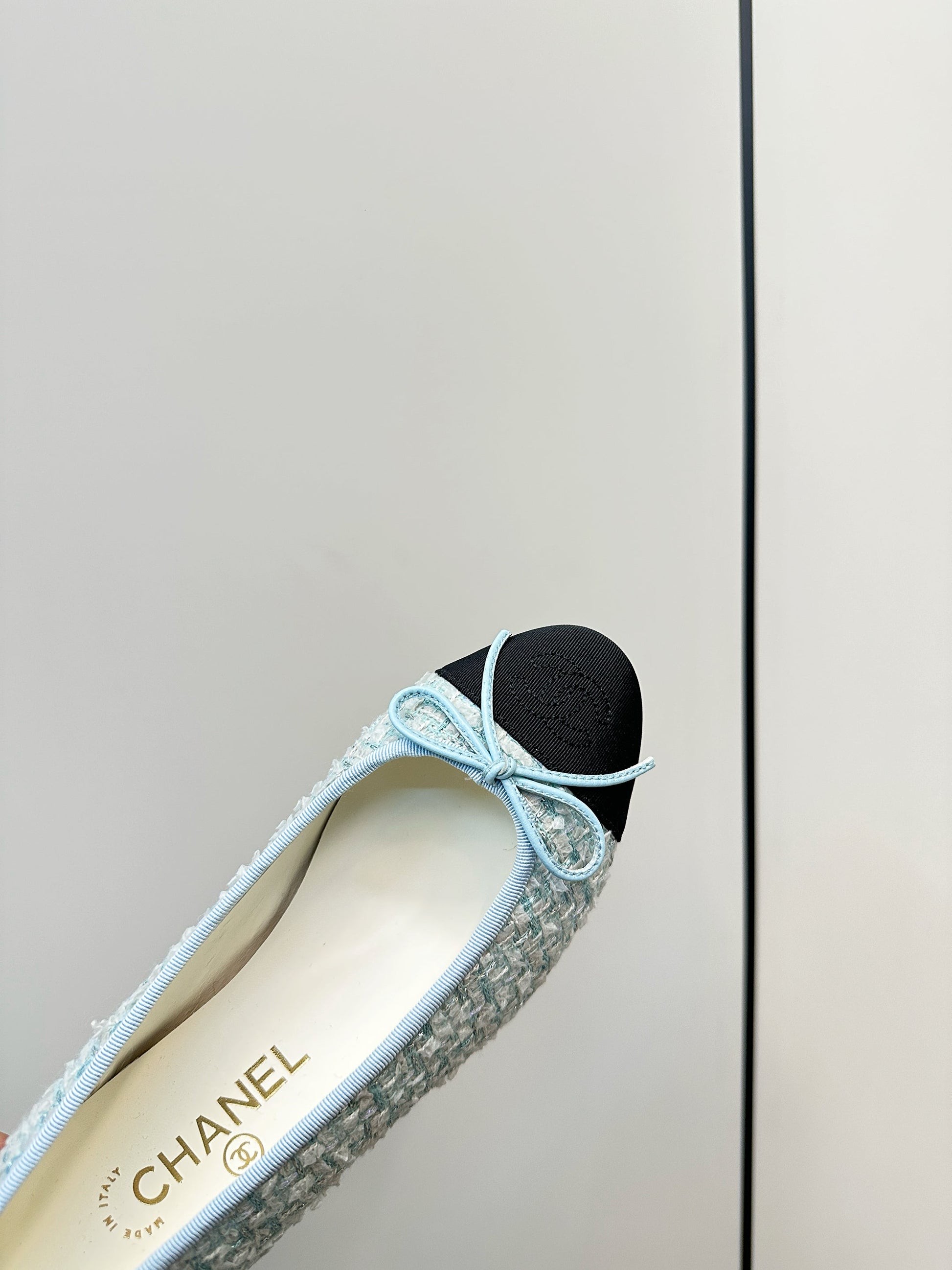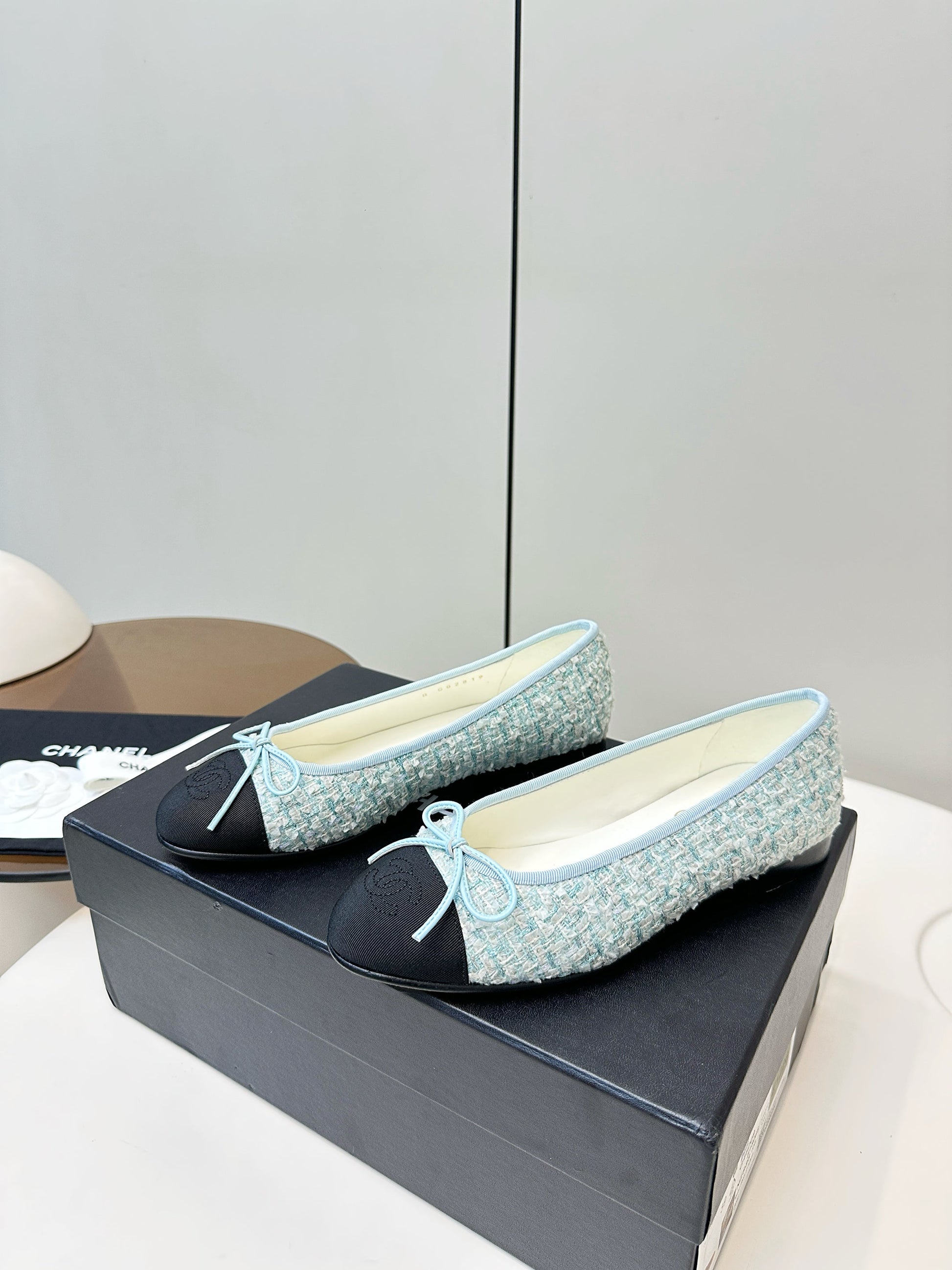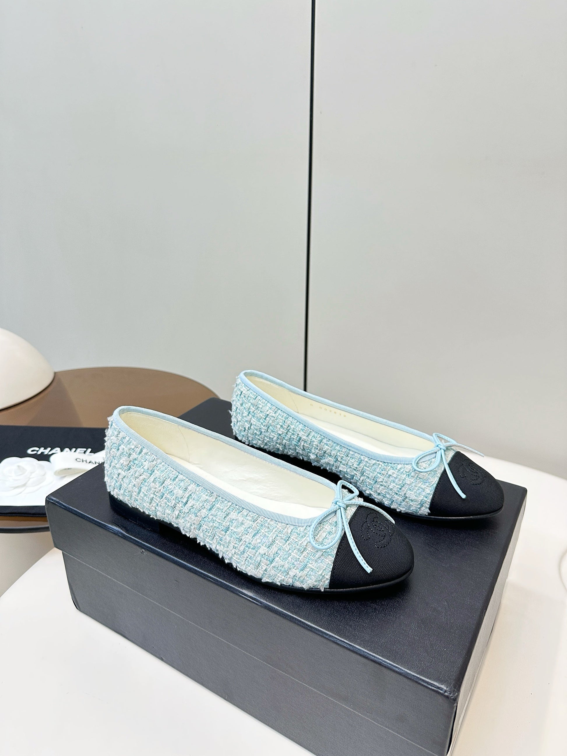 Chanel 25 Ballet Flat Blue Black Tweed Frabic 469256