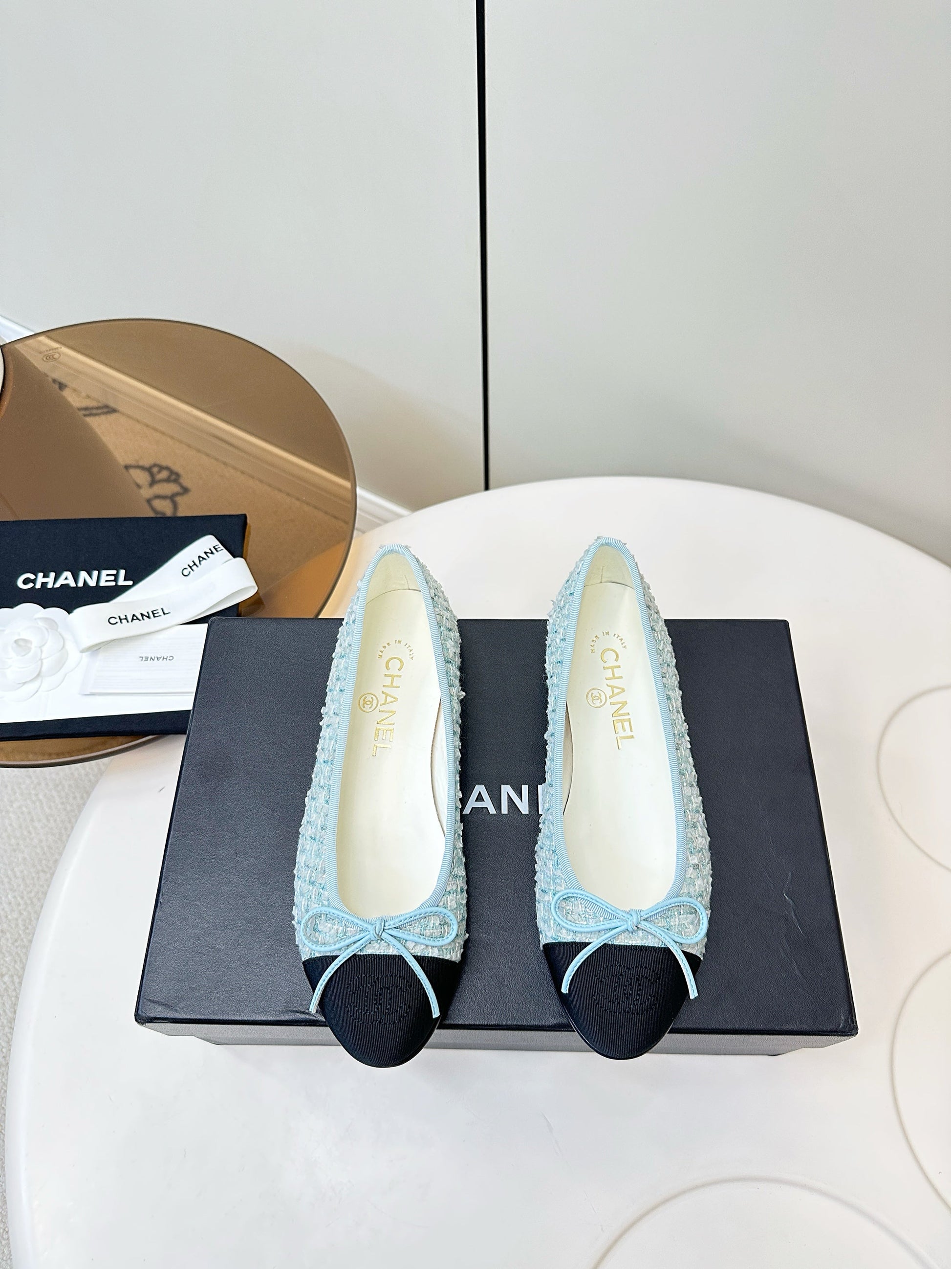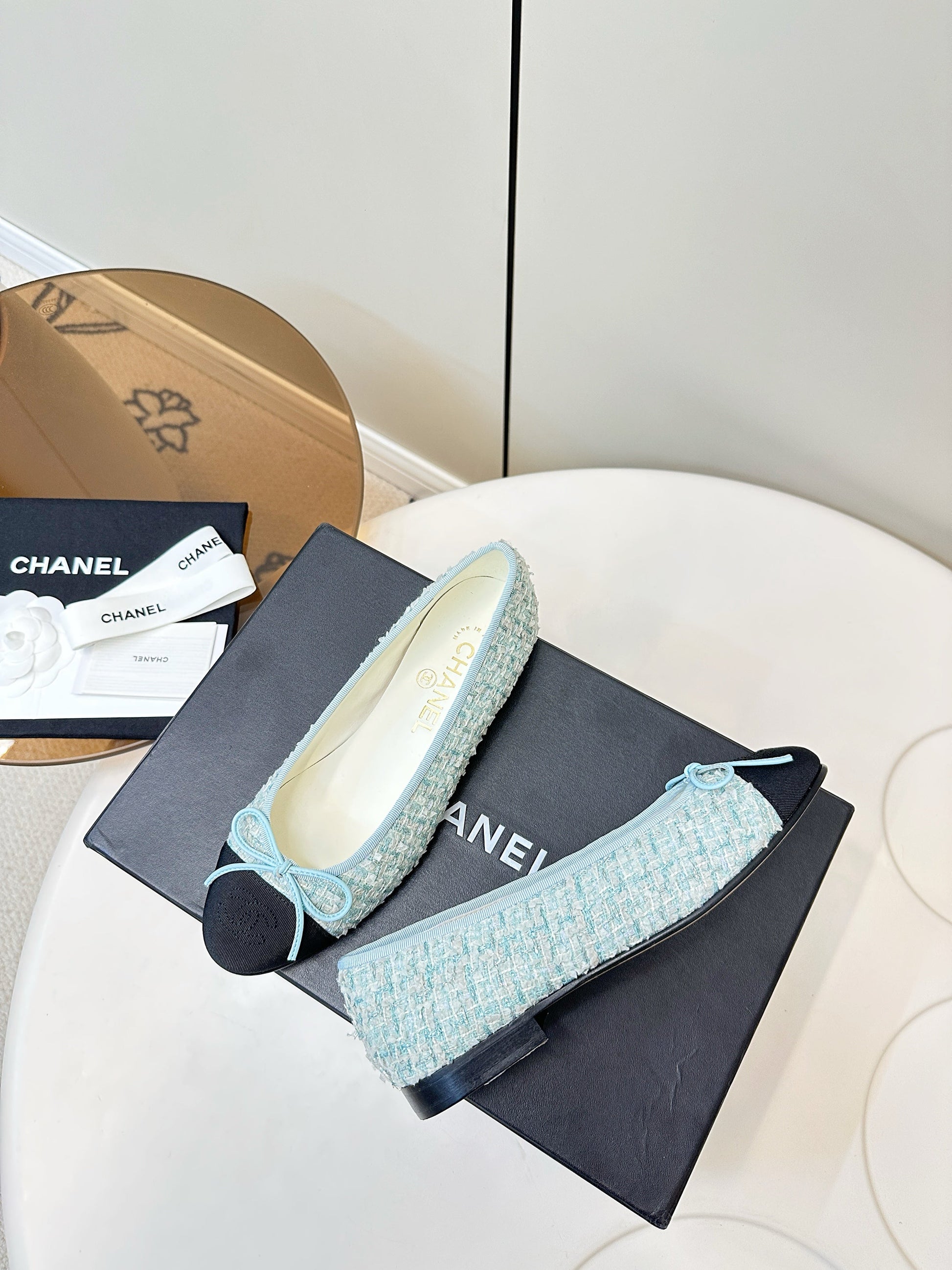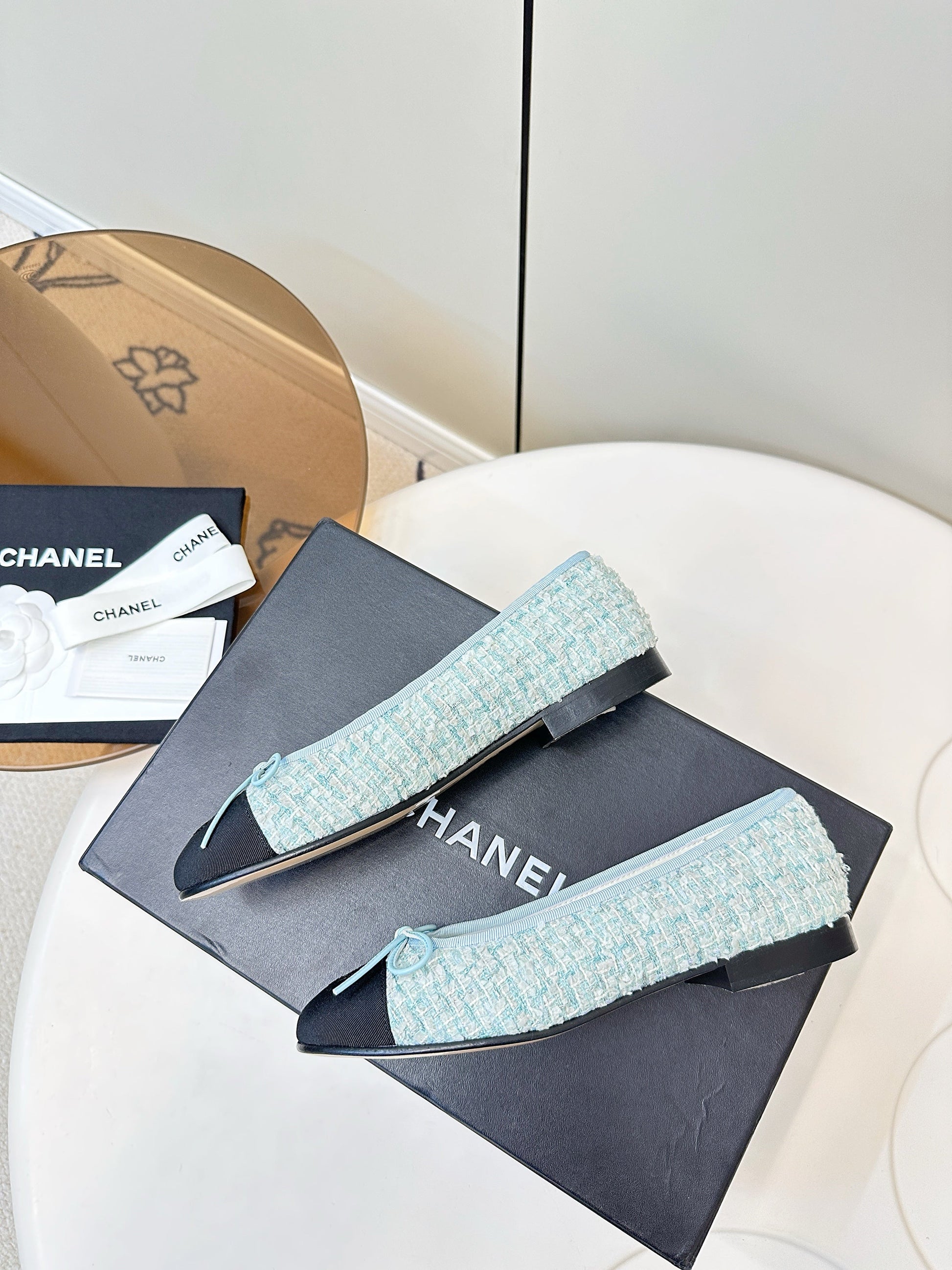 Chanel 25 Ballet Flat Blue Black Tweed Frabic 469256
