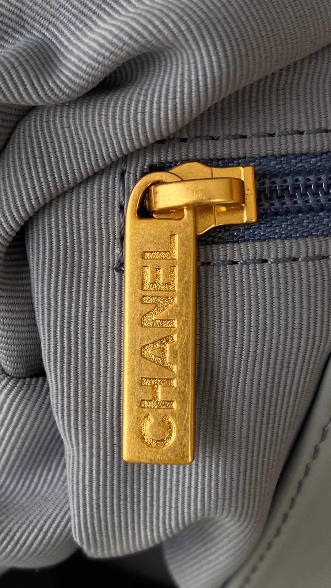 Chanel 25 Large Cargo Hobo Bag Blue Gold Denim Fabric