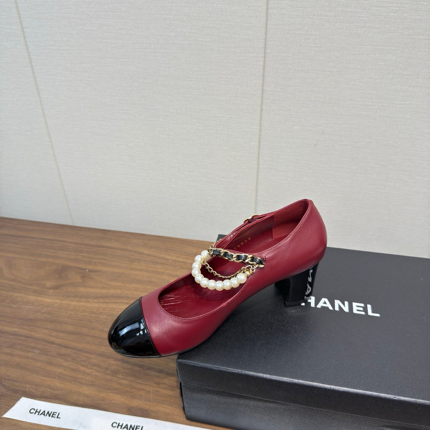 Chanel 25 Mary Jane Ankle Chain Pump Burgundy black Cowhide 465598