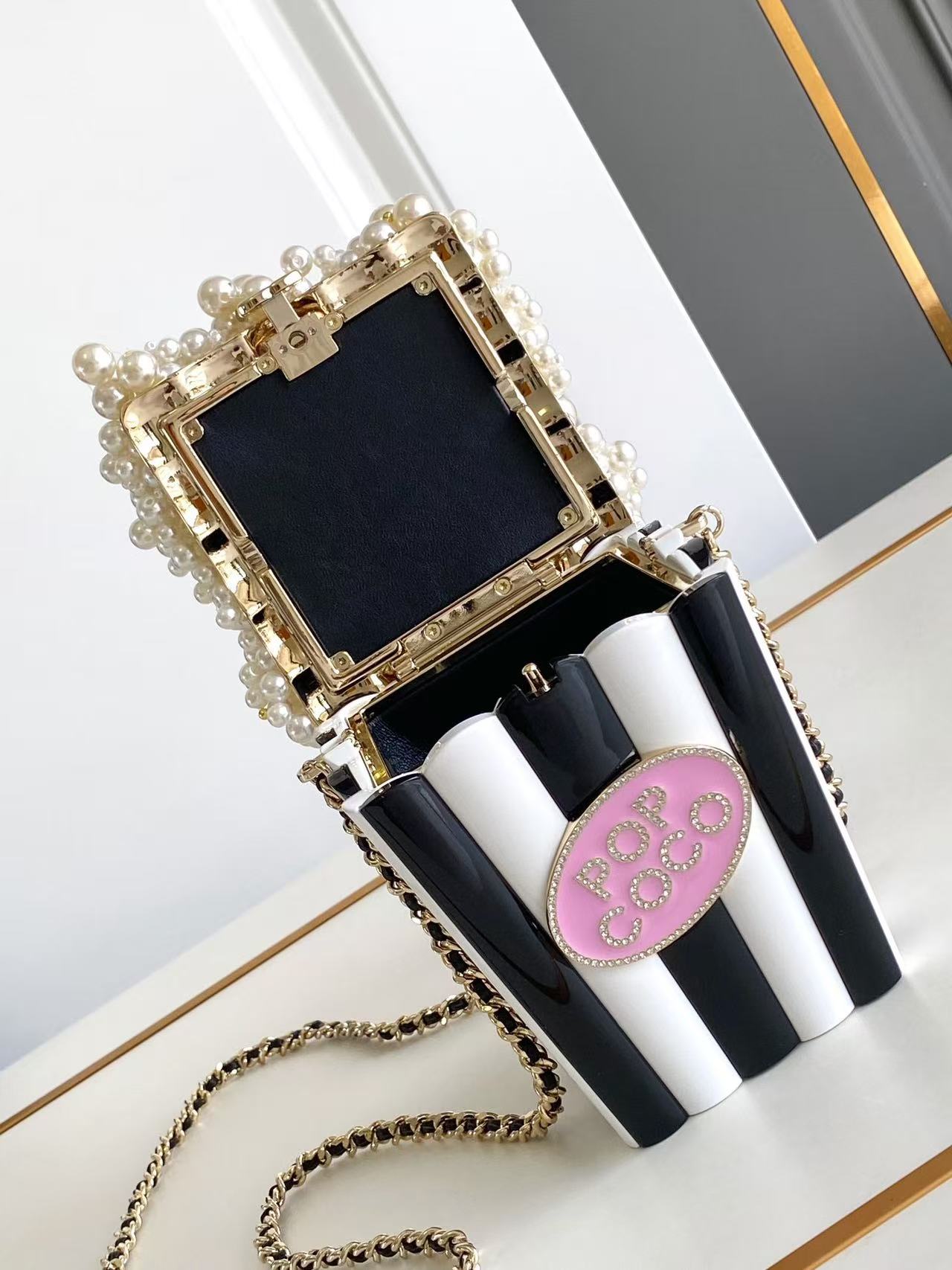 Chanel 25 Popcorn Minaudière Bag Black White Pink Resin