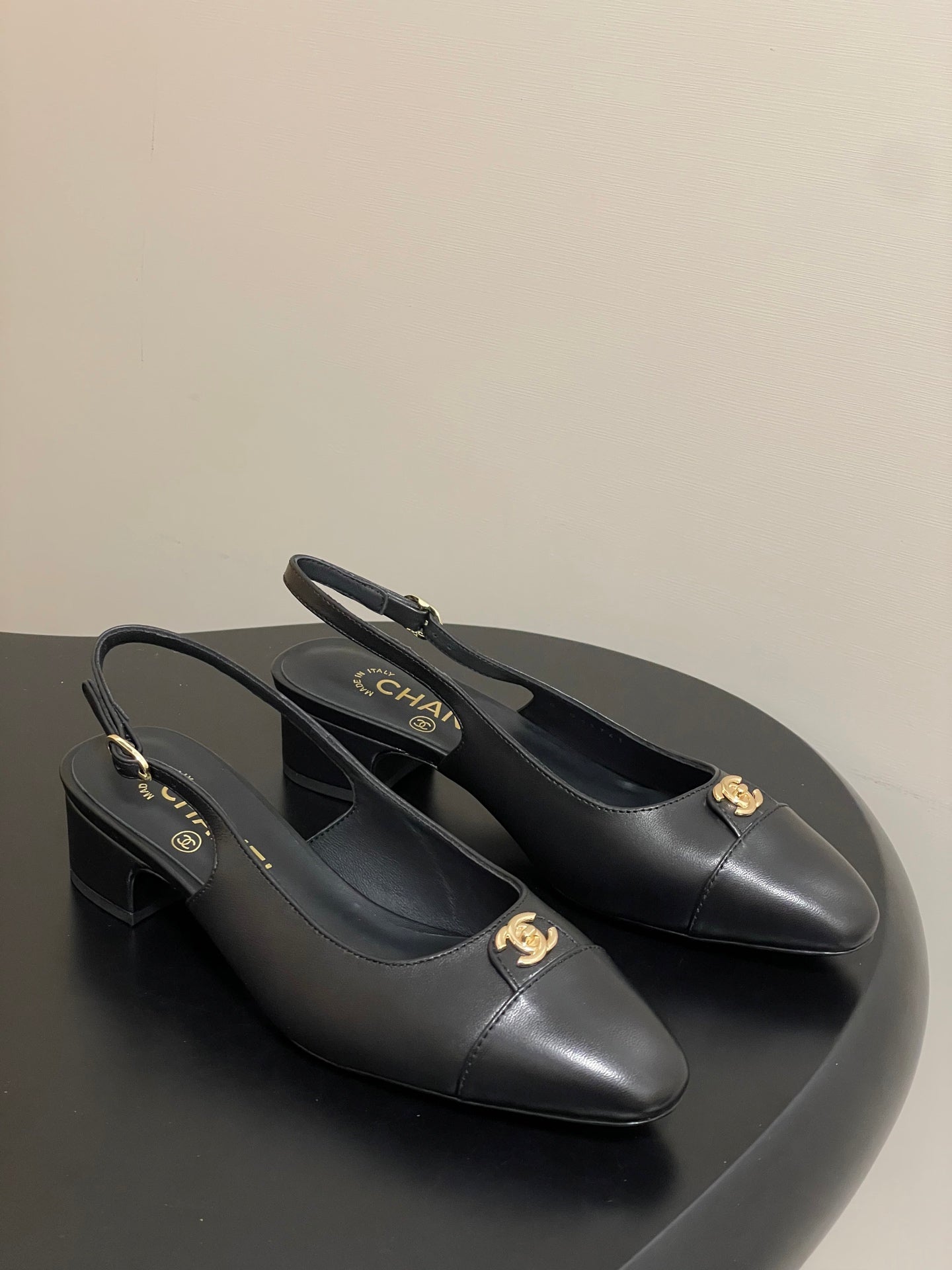 Chanel 25 Slingback 30mm Black Lambskin 473215
