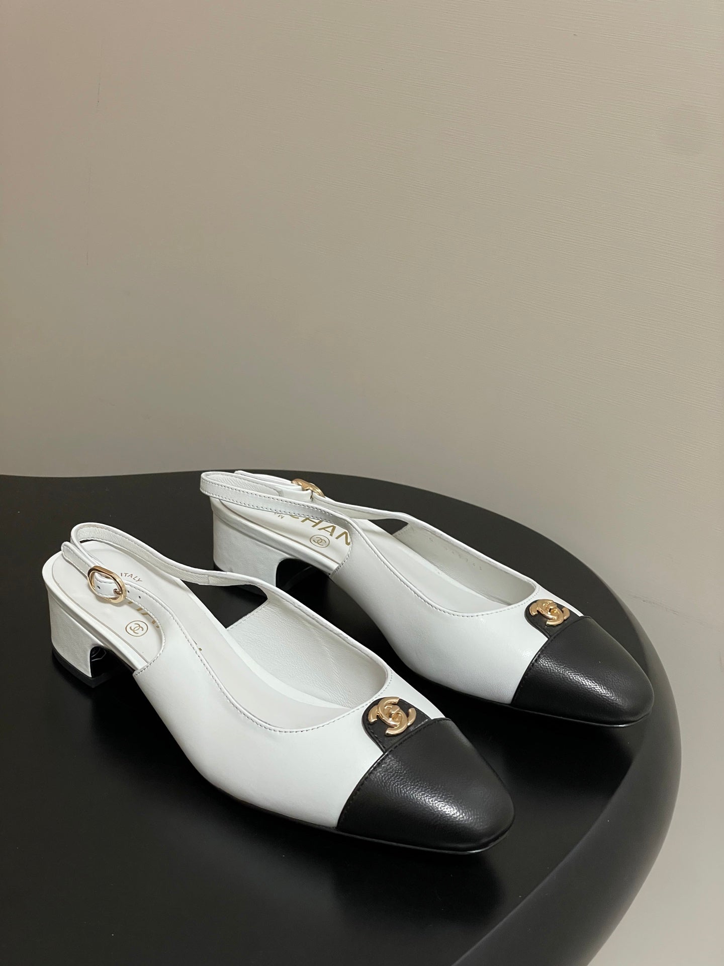 Chanel 25 Slingback 30mm White Black Lambskin 473214
