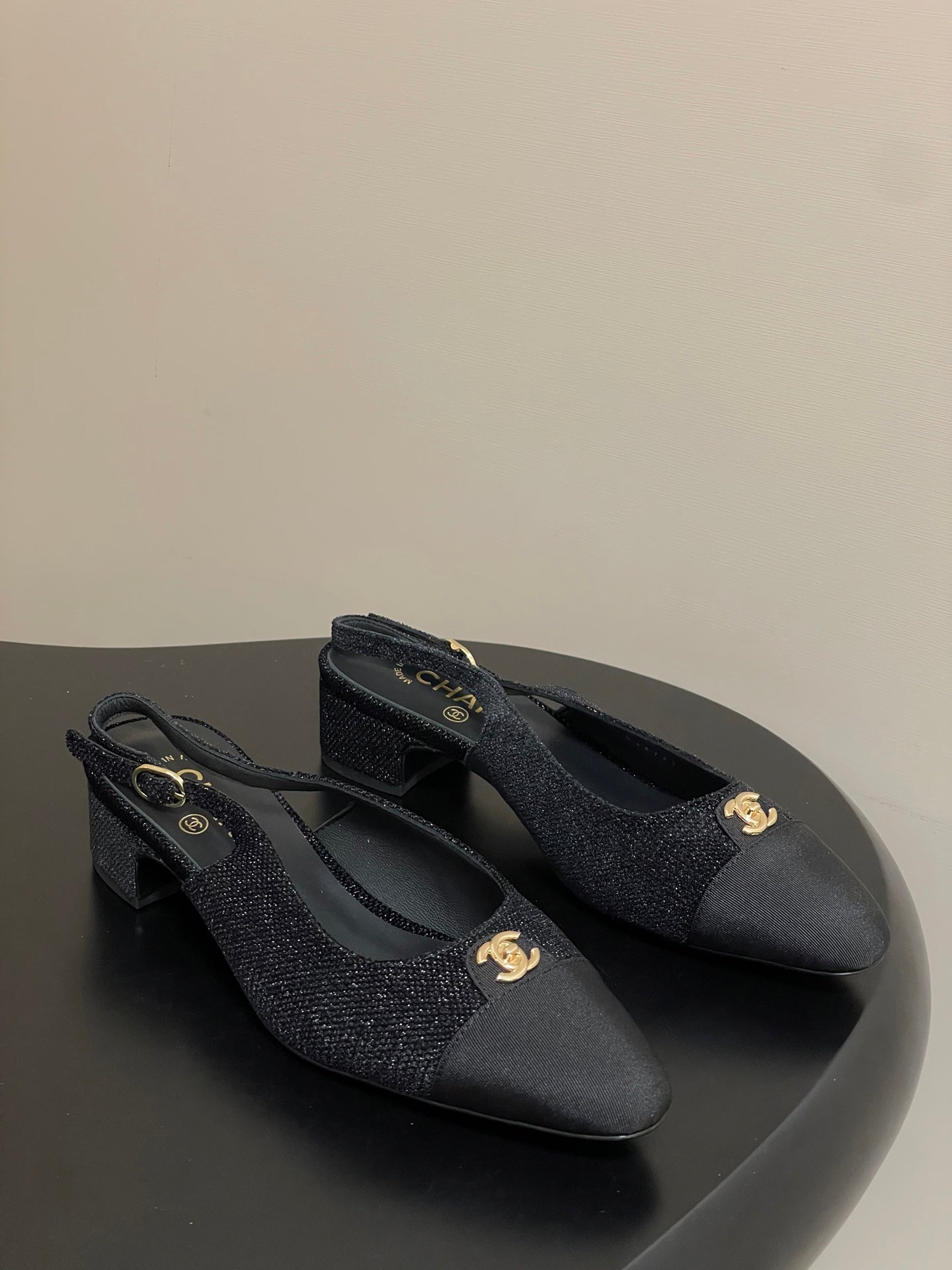 Chanel 25 Slingback Black Lambskin Fabric 473212