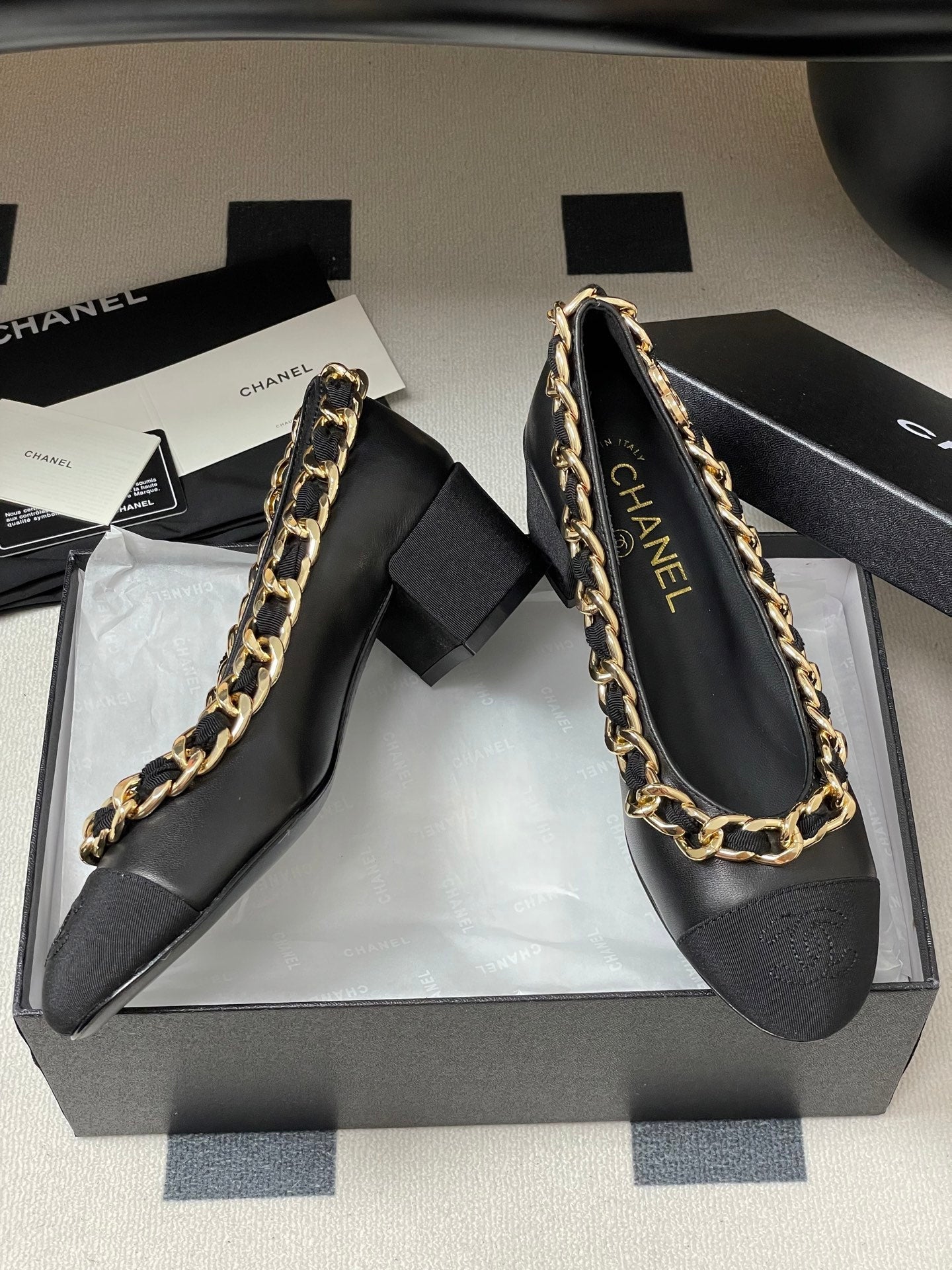 Chanel 25A 55mm Pump Big Chain Double C Black Sheepskin 393815